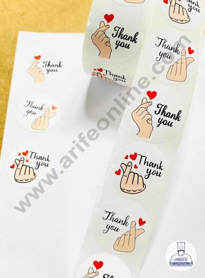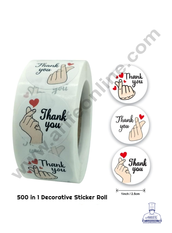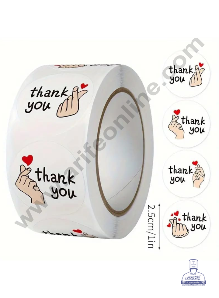 CAKE DECORâ„¢ 1 Roll 500pcs K-Pop Style Heart Gesture Design Thank You Paper Sticker Labels 25mm
