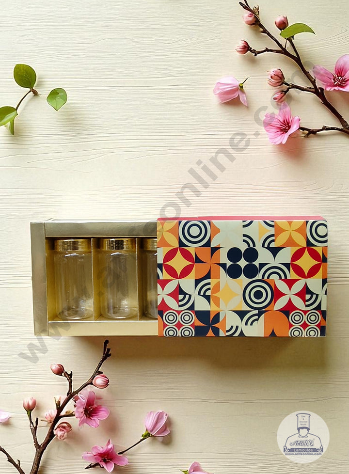 • Uses: Primary Use: Gifting three small bottles of liquid or dry goods. Occasions: Ideal for festivals (like Diwali), housewarmings, corporate giveaways, or party favors where a premium, ready-to-present package is desired.