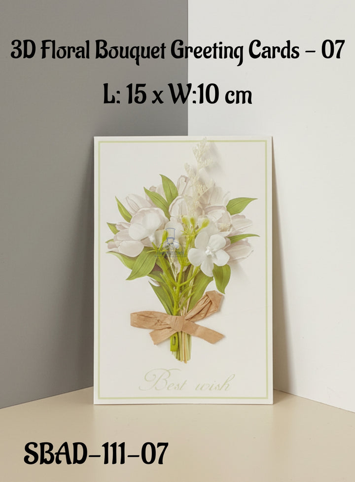 3D Floral Bouquet Greeting Cards - White(Best Wish)|L: 15 x W:10 cm|CAKE DECORâ„¢