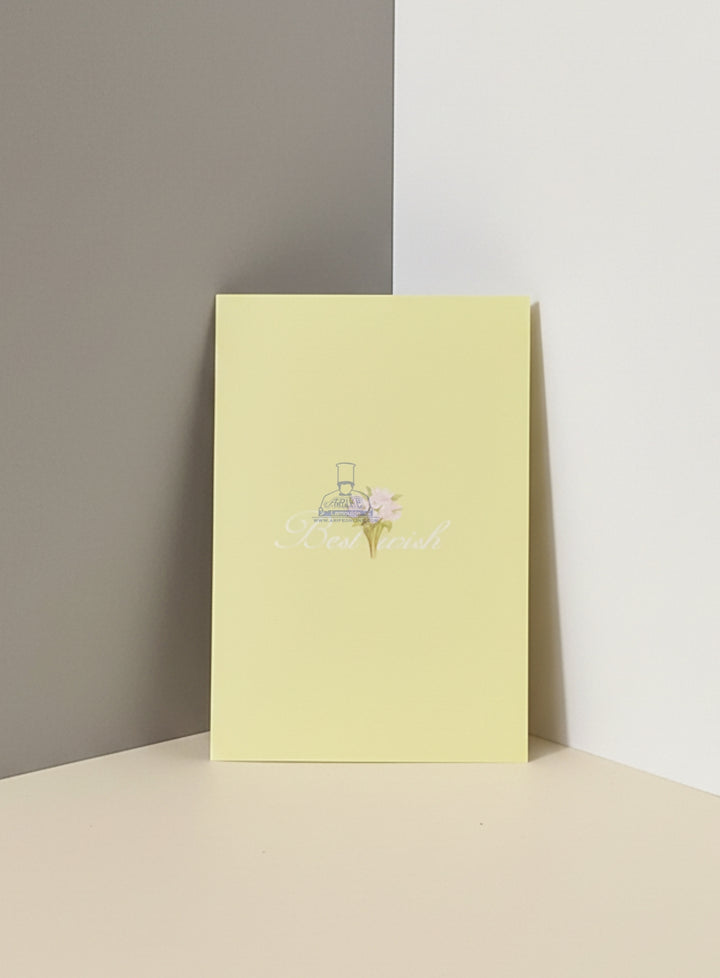 4. Text: Elegant script reading "Best wish" is printed below the bouquet.