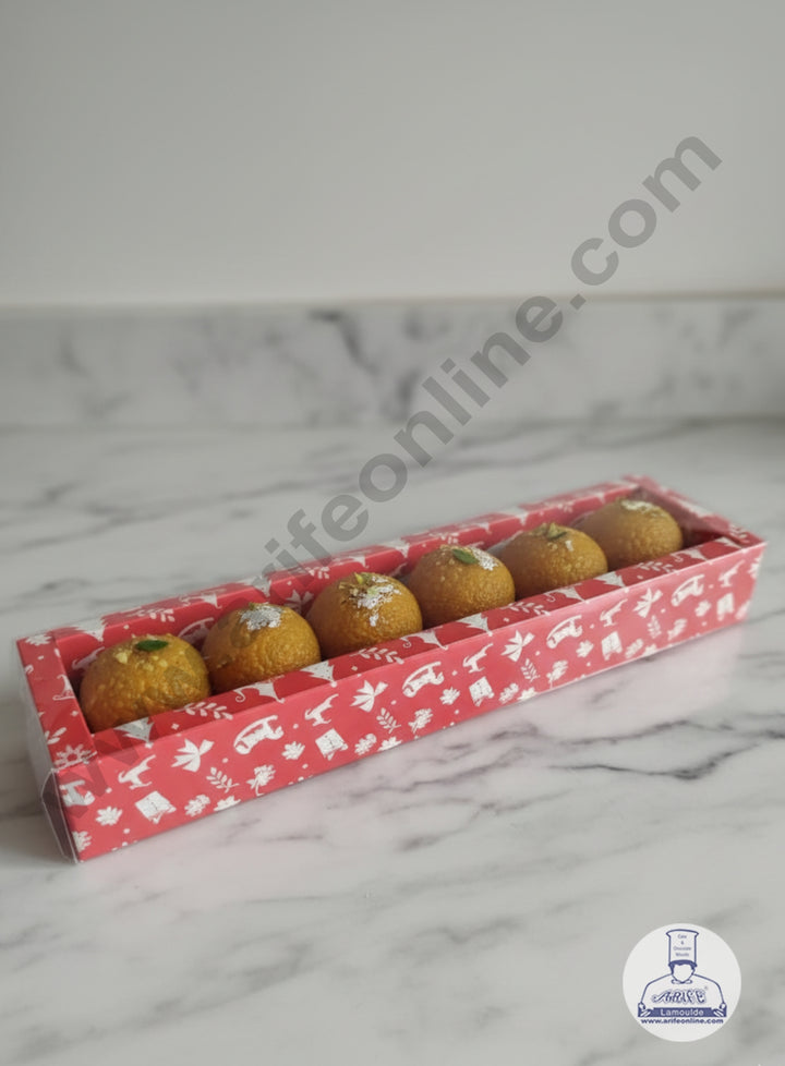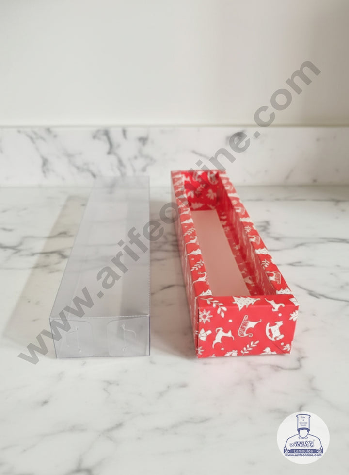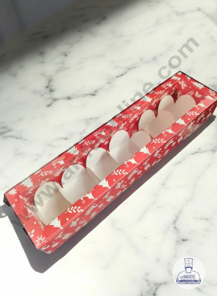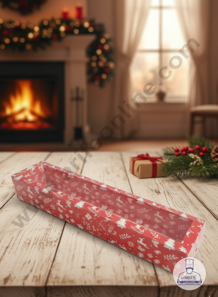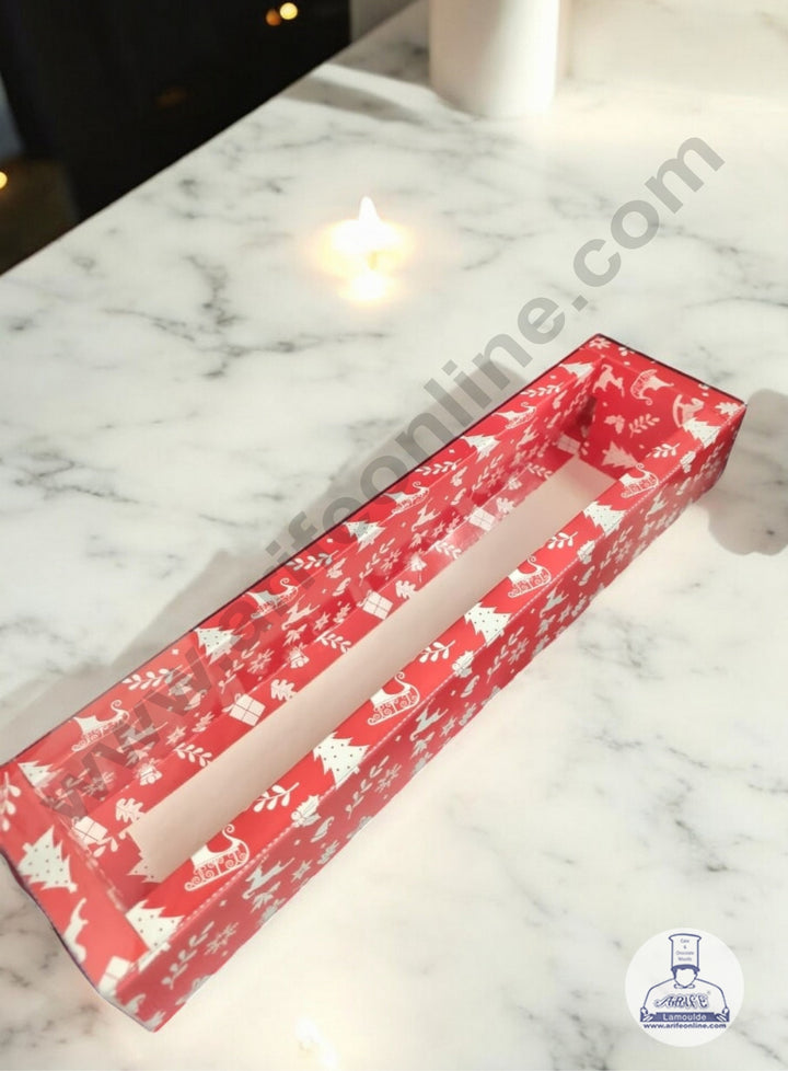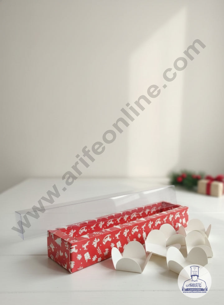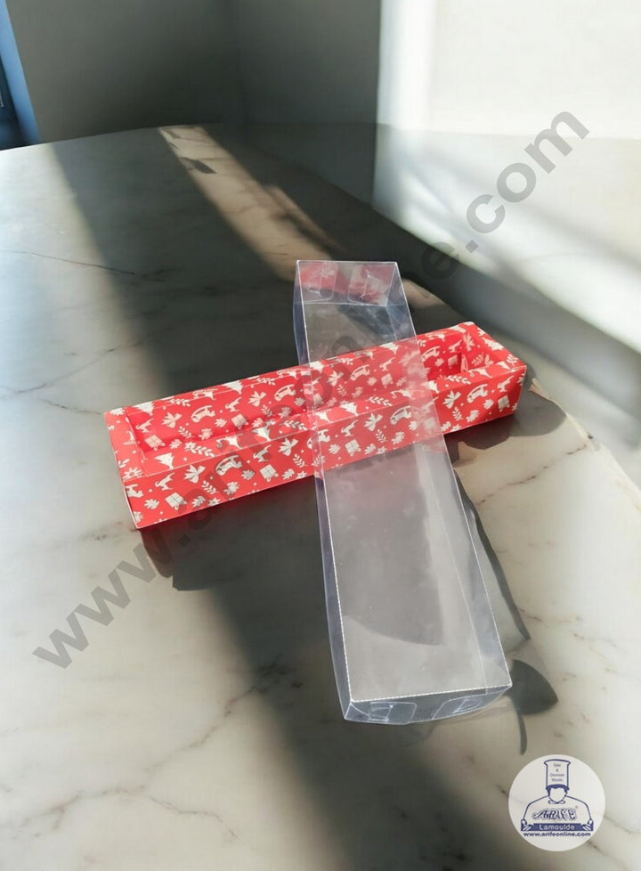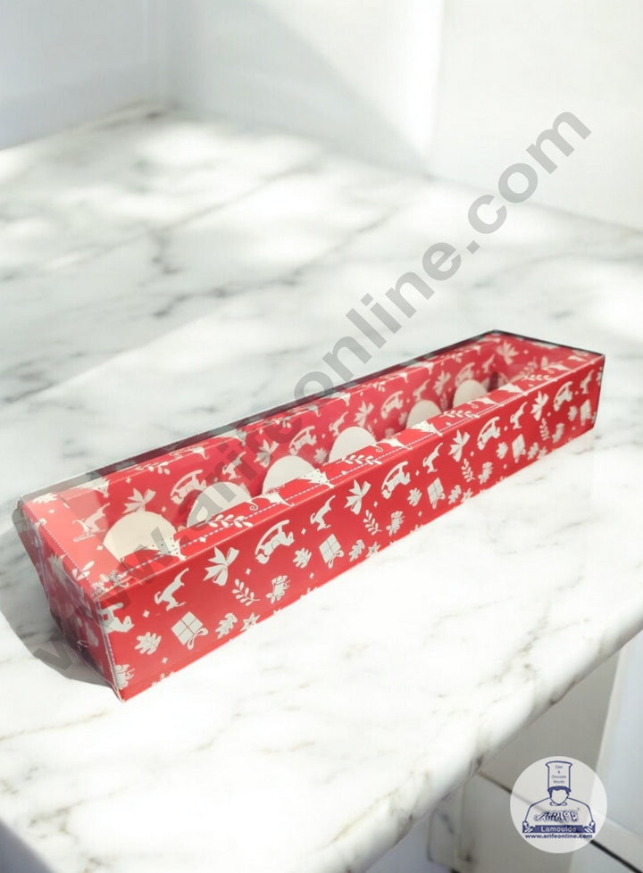CAKE DECOR™ 6 Cavity Long Premium Chocolate Box with Clear Lid - Christmas Theme | Red | 1 Piece Pack
