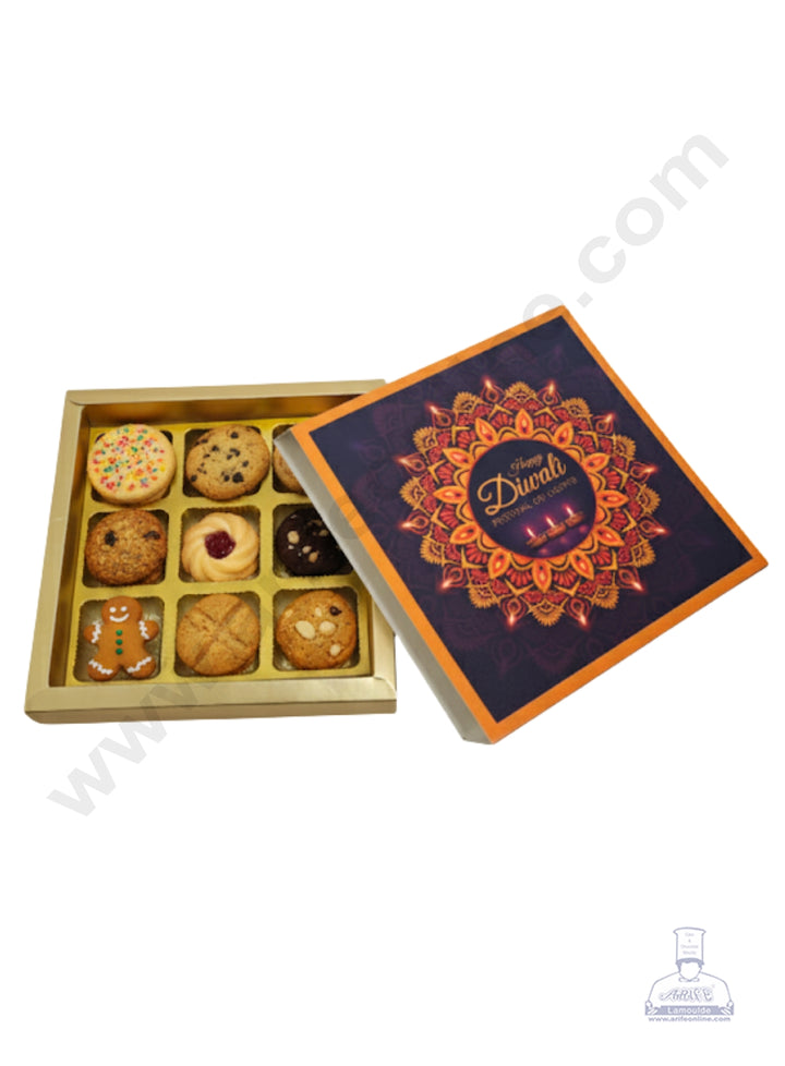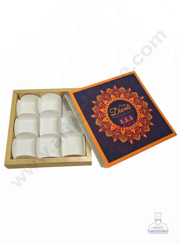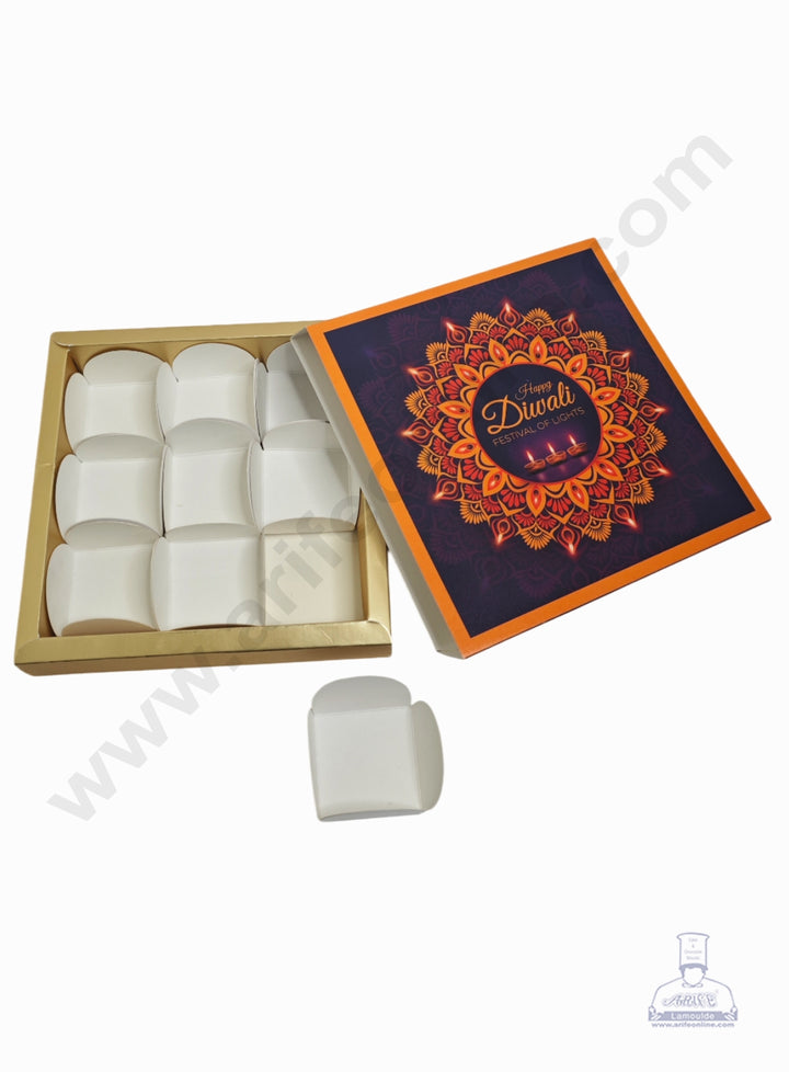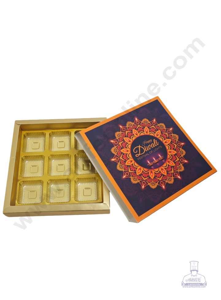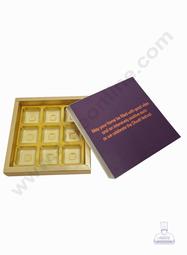 9 Cavity Diwali Sliding Chocolate Box Without Cavity - Purple (10 Pcs Pack) - (16 cm X 16 cm X 3 cm) Without Cavity| Festive Mithai Box for Chocolates, Dry Fruits & Sweets- CAKE DECORâ„¢