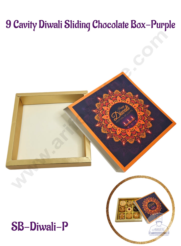 9 Cavity Diwali Sliding Chocolate Box Without Cavity - Purple (10 Pcs Pack) - CAKE DECORâ„¢