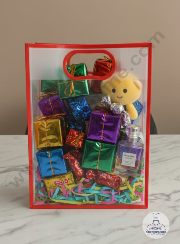 Big Red Transparent Bag with Handle (H: 30 X L: 22 X W: 11cm) |1 Piece | Gift Bag with Handle - CAKE DECOR™