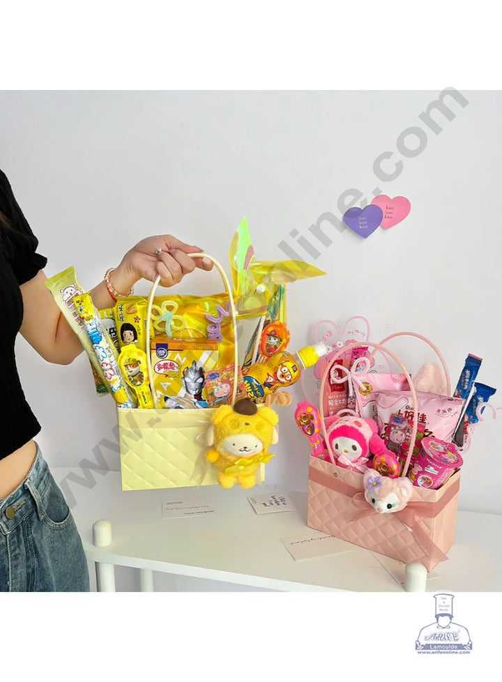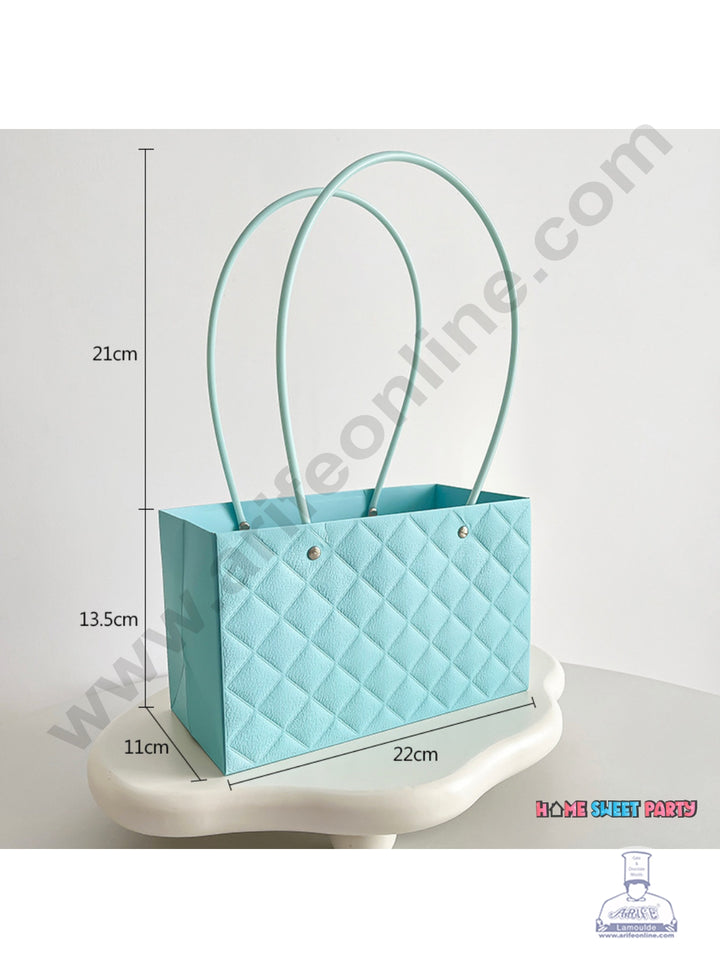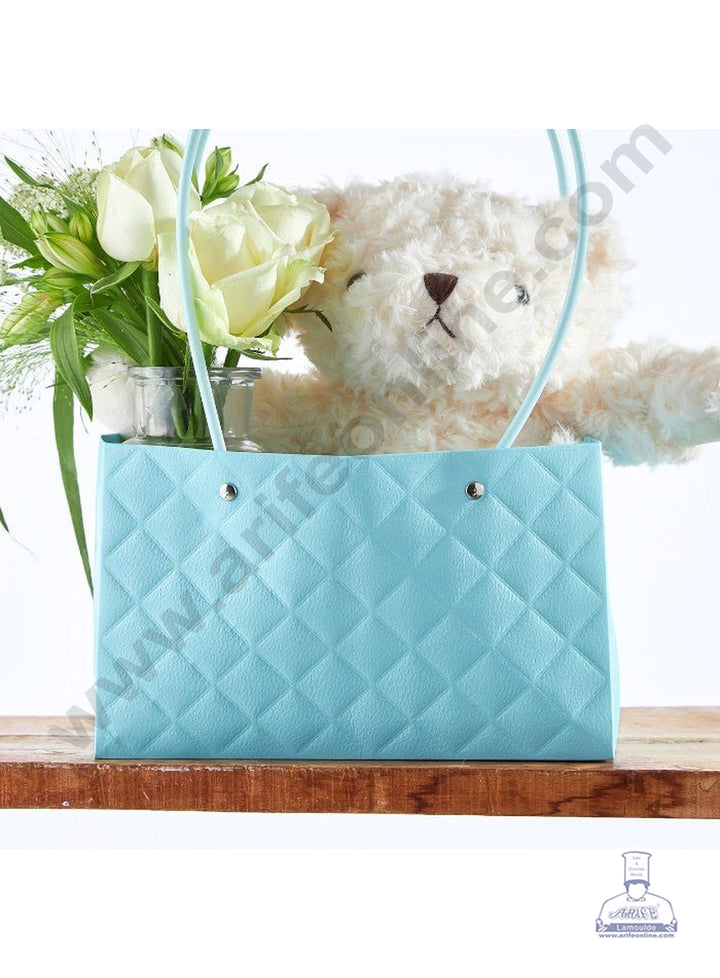 Blue Textured Tote Bag Hampers For Gifting And Flower Bouquets Foldable - CAKE DECOR™