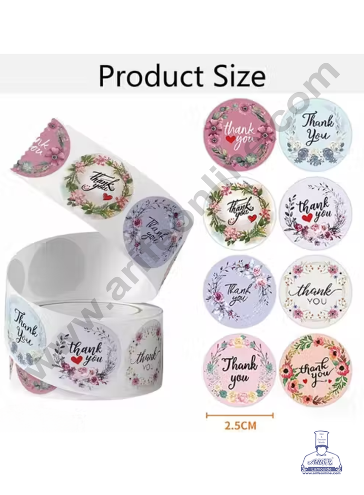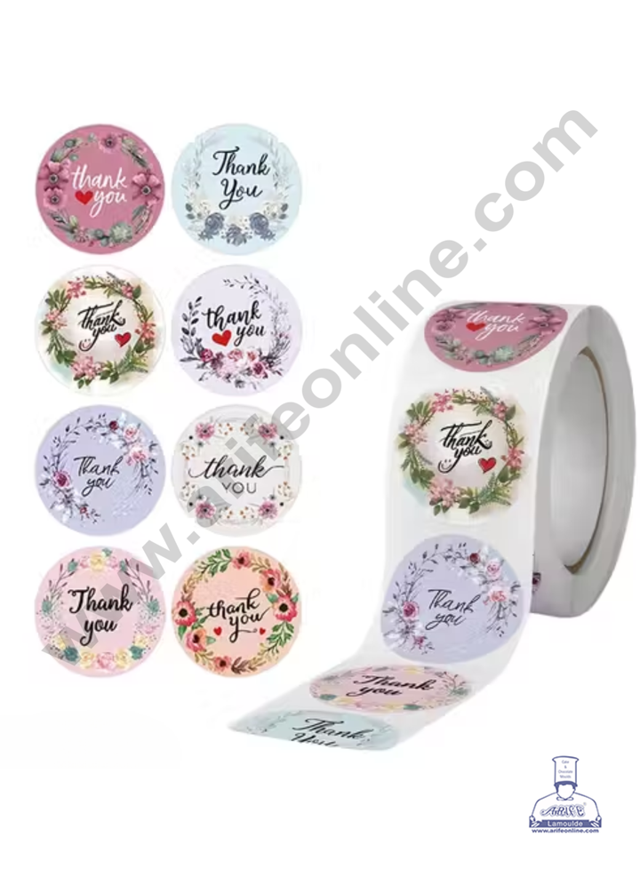 CAKE DECORâ„¢ 1 Roll 500pcs Assorted Pastel Floral Wreath Thank You Paper Sticker Labels 25mm