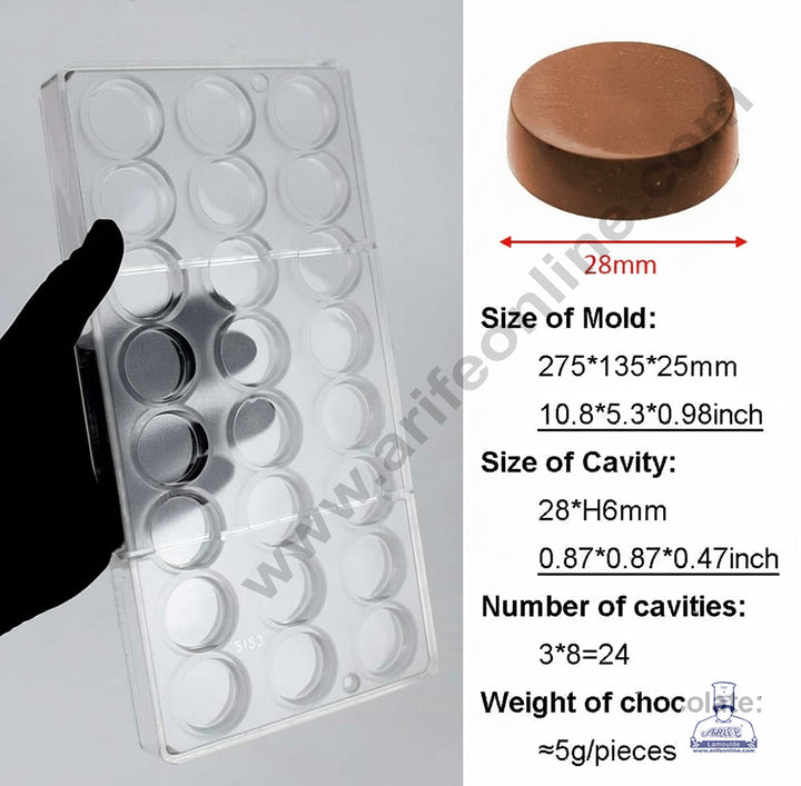 CAKE DECOR™ 24 Cavity 6g/pieces Professional Oblate Shape for Candy Bonbons Polycarbonate Chocolate Mold│SB-2123│