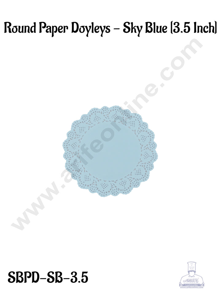 CAKE DECOR™ 3.5 inch Paper Doilies | Round Placemats | Decorative Accessories | Disposable Paper Mats - Sky Blue (100 pcs Pack)