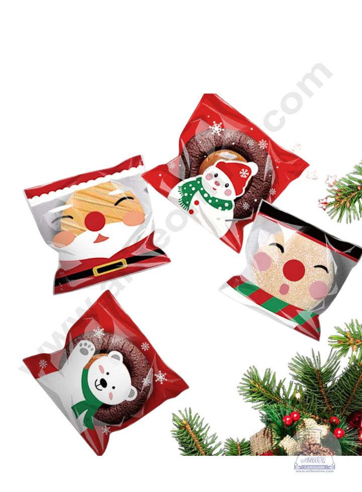CAKE DECOR™ 4 Assorted Christmas Designs Cookie Pouch Small - 100Pcs (Self Adhesive)(10x10x3 cm)
