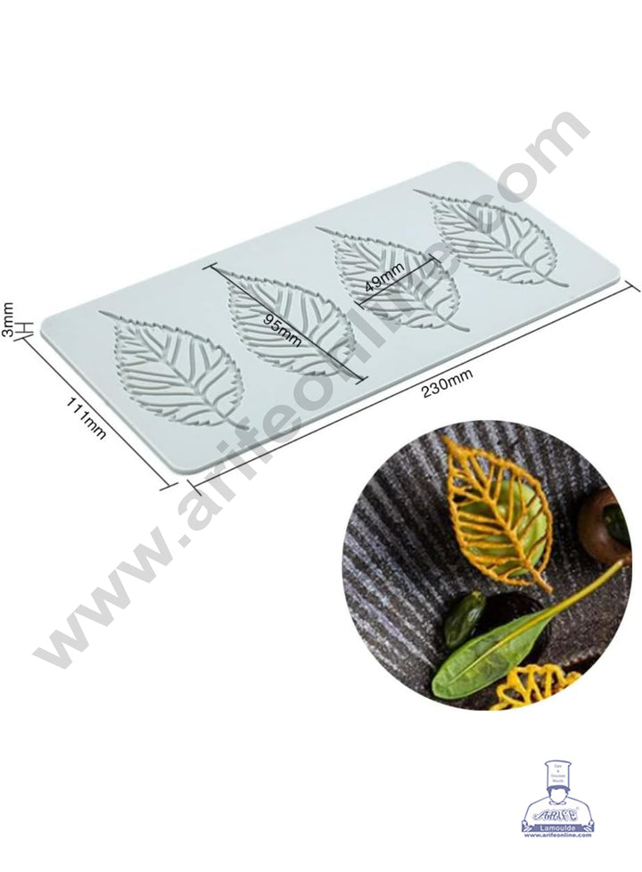 CAKE DECOR™ 4-Cavity Detailed Birch/Elm Leaf Veiner Silicone Mat - LSD-87