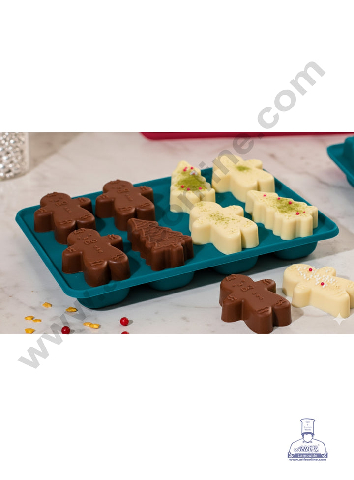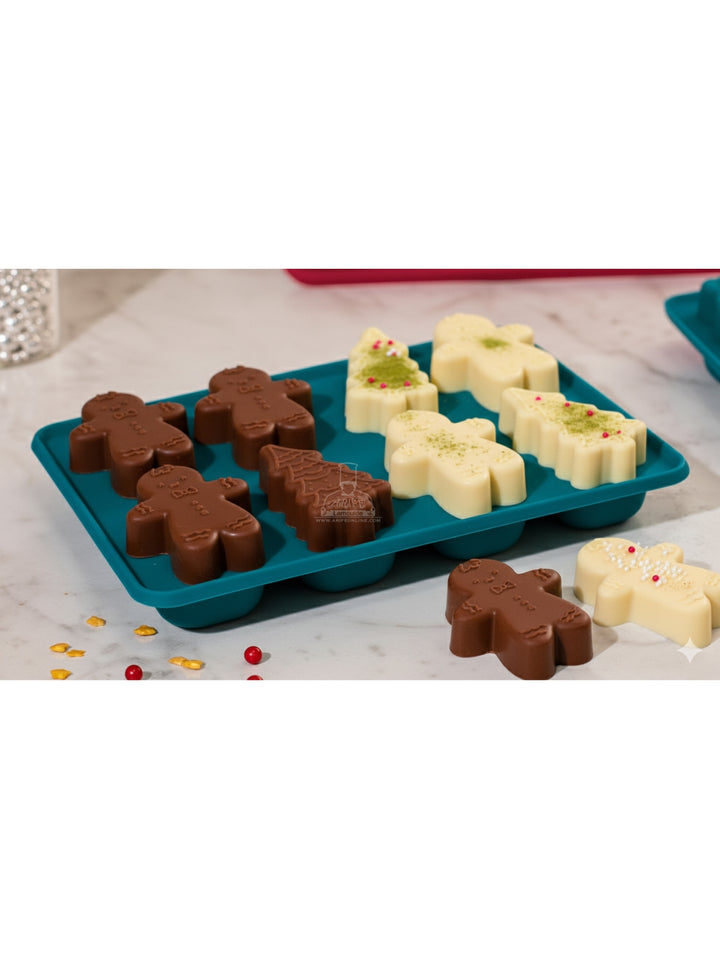 CAKE DECOR™ 4-Cavity Gingerbread Man and 4-Cavity Christmas Tree Silicone Mold - SBSM-YH1141