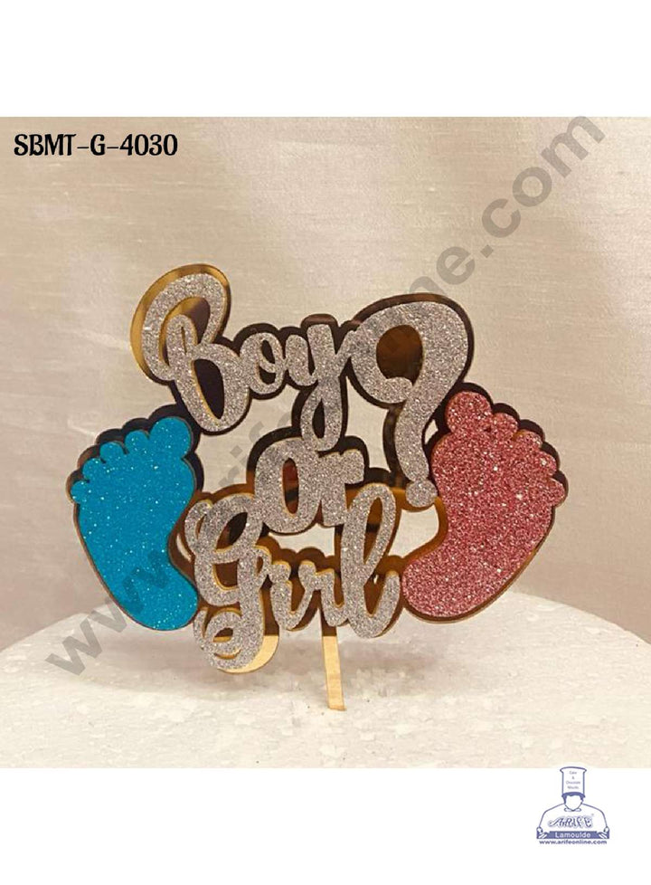 CAKE DECORâ„¢ 5 inch Acrylic Glitter Boy Or Girl with Foot Print Cake Topper (SBMT-G-4030)