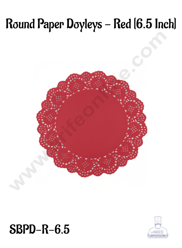 CAKE DECOR™ 6.5 inch Paper Doilies | Round Placemats | Decorative Accessories | Disposable Paper Mats - Red (100 pcs Pack)