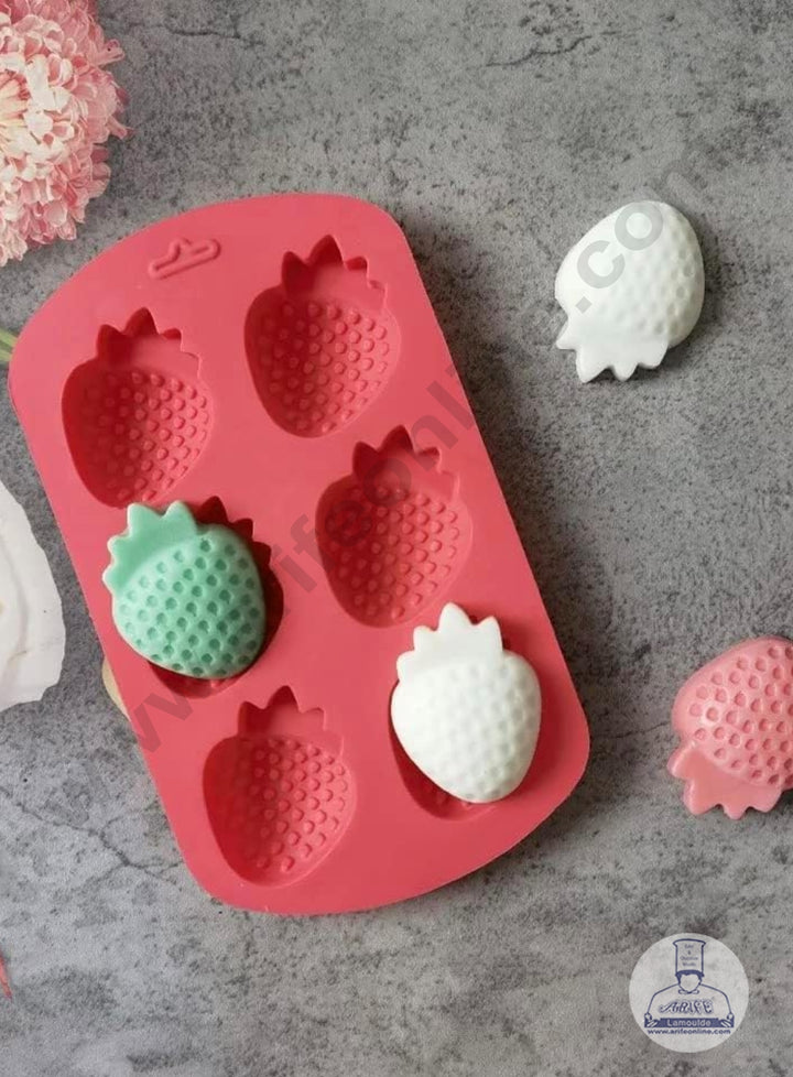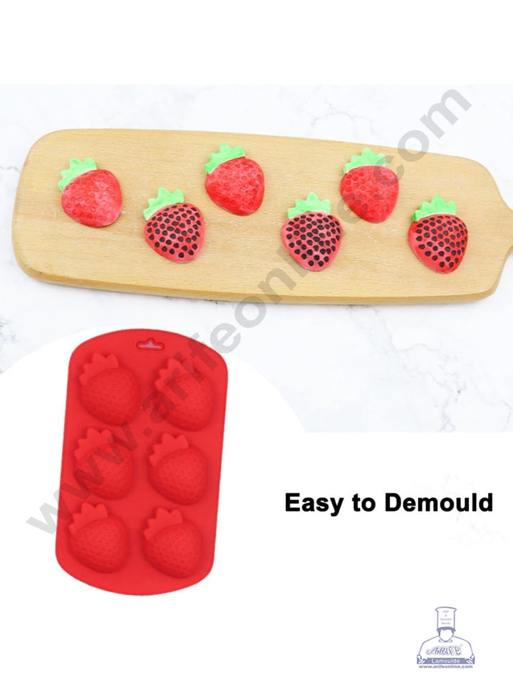 • ✅ Cavities:  6-Cavity Design: The mold contains six individual, identical strawberry-shaped indentations. The cavities are arranged in a 3x2 grid