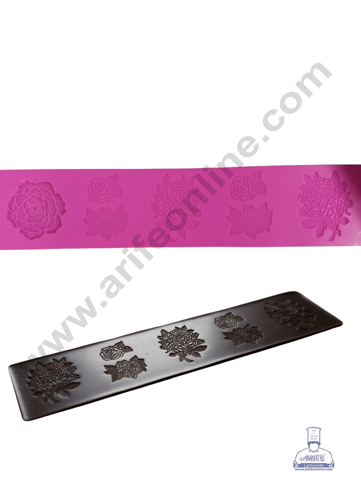 CAKE DECOR™ 7-Cavity Assorted Rose and Floral Bouquet Silicone Border Mat- LSD-25