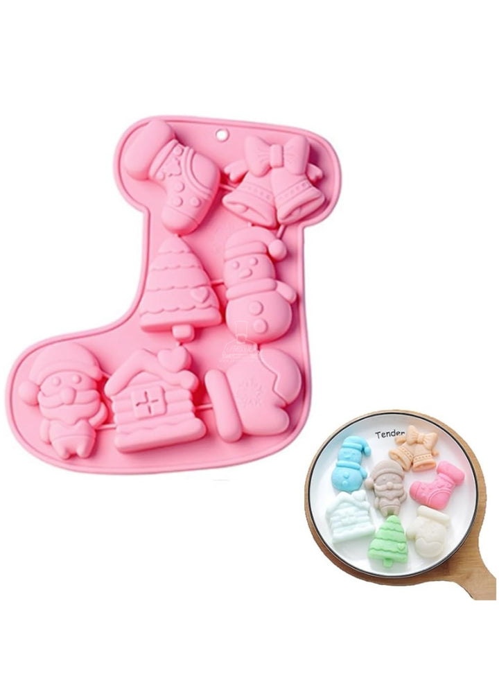 CAKE DECOR™ 7-Cavity Christmas Stocking-Shaped Silicone Chocolate/Candy Mould - SBSM-LBM979