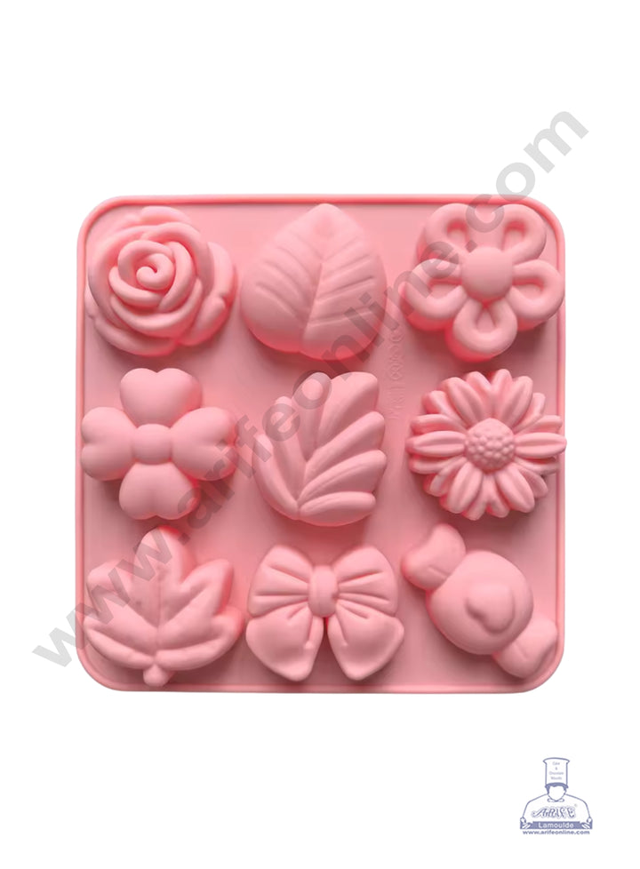 CAKE DECOR™ 9-Cavity Multi-Floral and Motif Silicone Mold│SBSM-XY780│