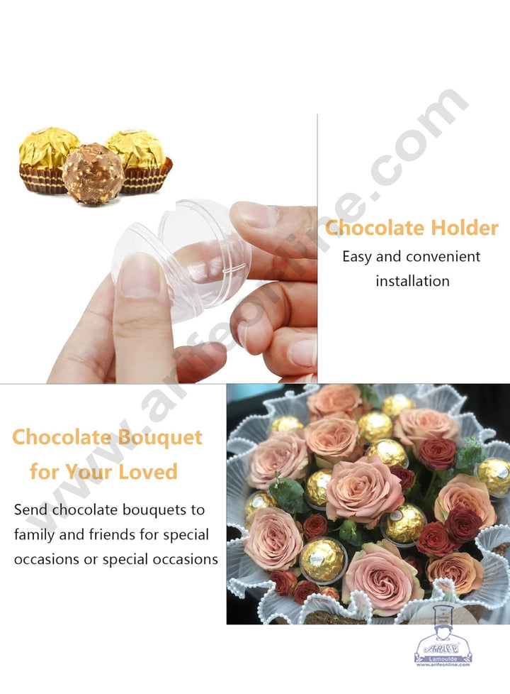 • Color and Clarity: The holder is crystal-clear and transparent, offering glass-like clarity. This design allows the contained chocolate or treat to be clearly visible, enhancing the overall aesthetic of the display.
