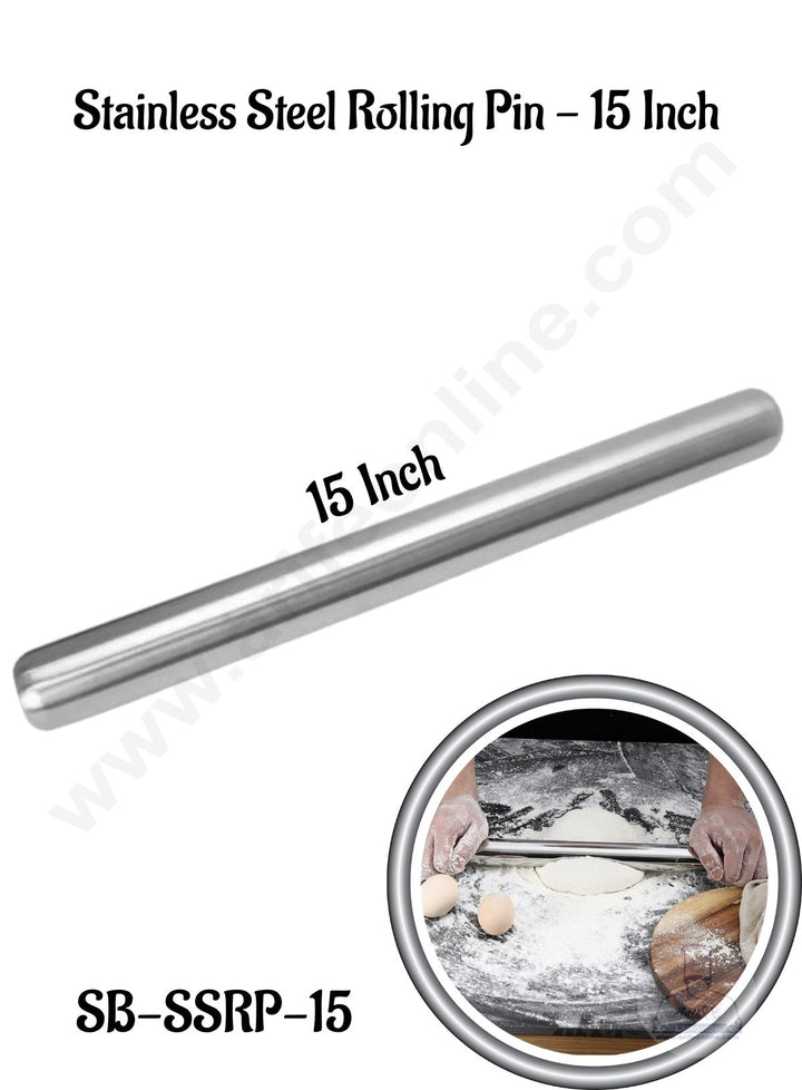 CAKE DECOR™  Stainless Steel Rolling Pin | 15 Inch | SB-SSRP-15 | 1 Piece