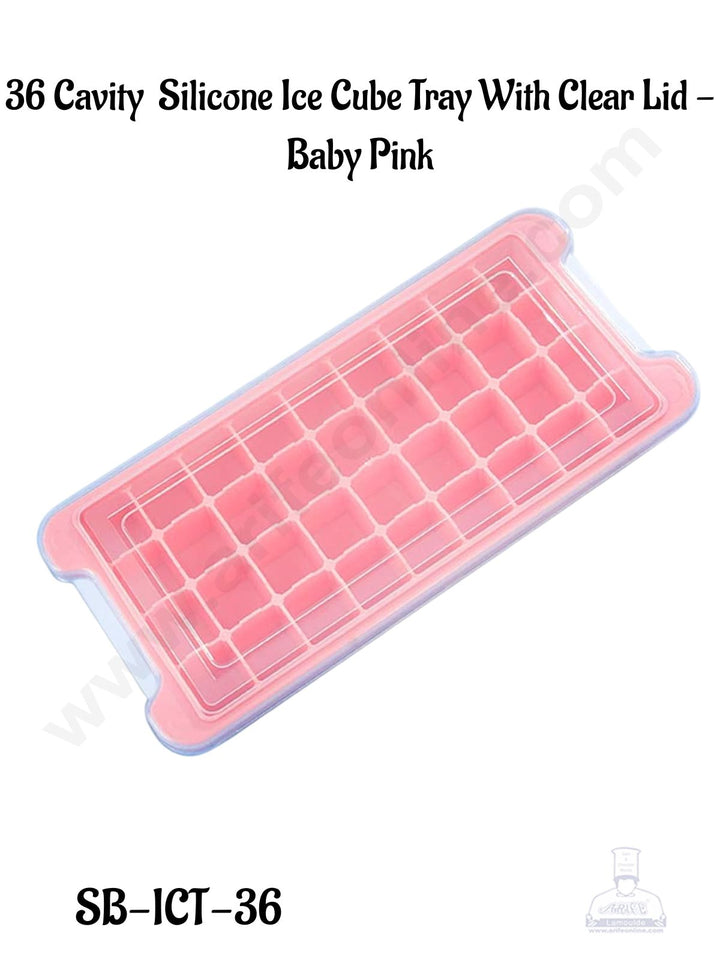 CAKE DECOR™ Baby Pink Silicone Ice Cube Tray With Clear Lid- 36 Cavity │ 1 Piece │(SB-ICT-36)│