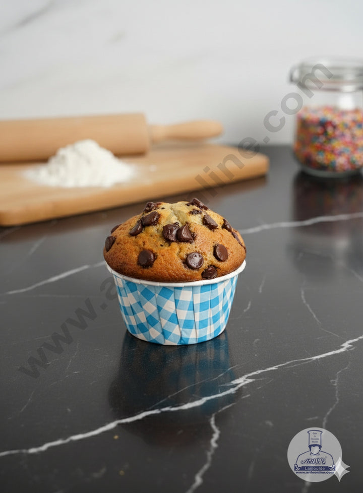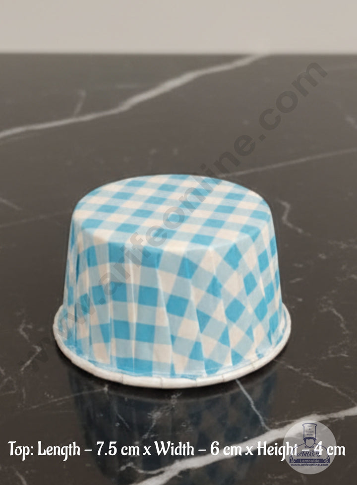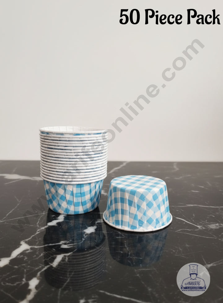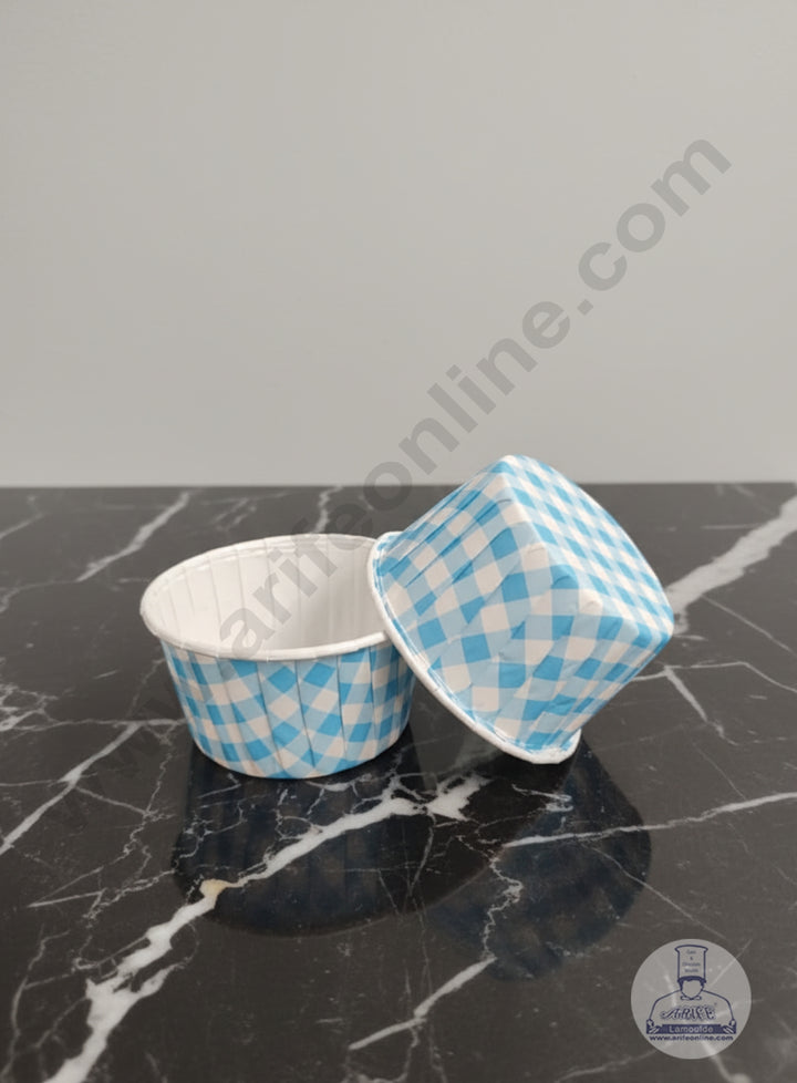 CAKE DECOR™ Blue Checkered Direct Bake-able Paper Muffin Cups - Big (50 Pcs Pack)