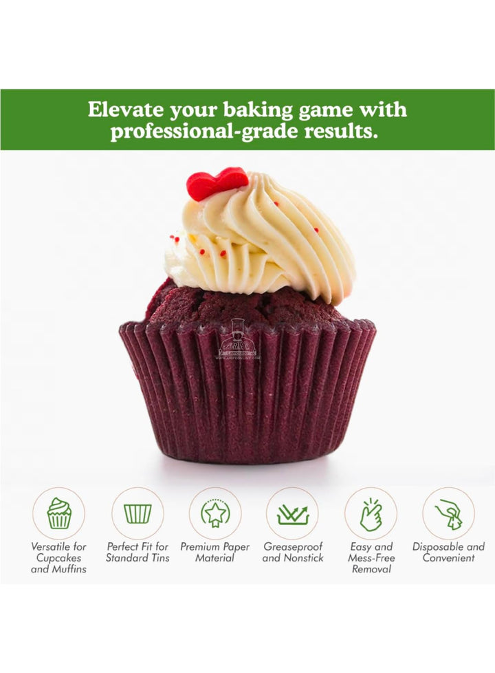 CAKE DECORâ„¢ Burgundy Paper Liner For Cupcake and Muffins - Cylinder Pack 100 Pcs - 2 Inch Diameter X 1 Inch Height