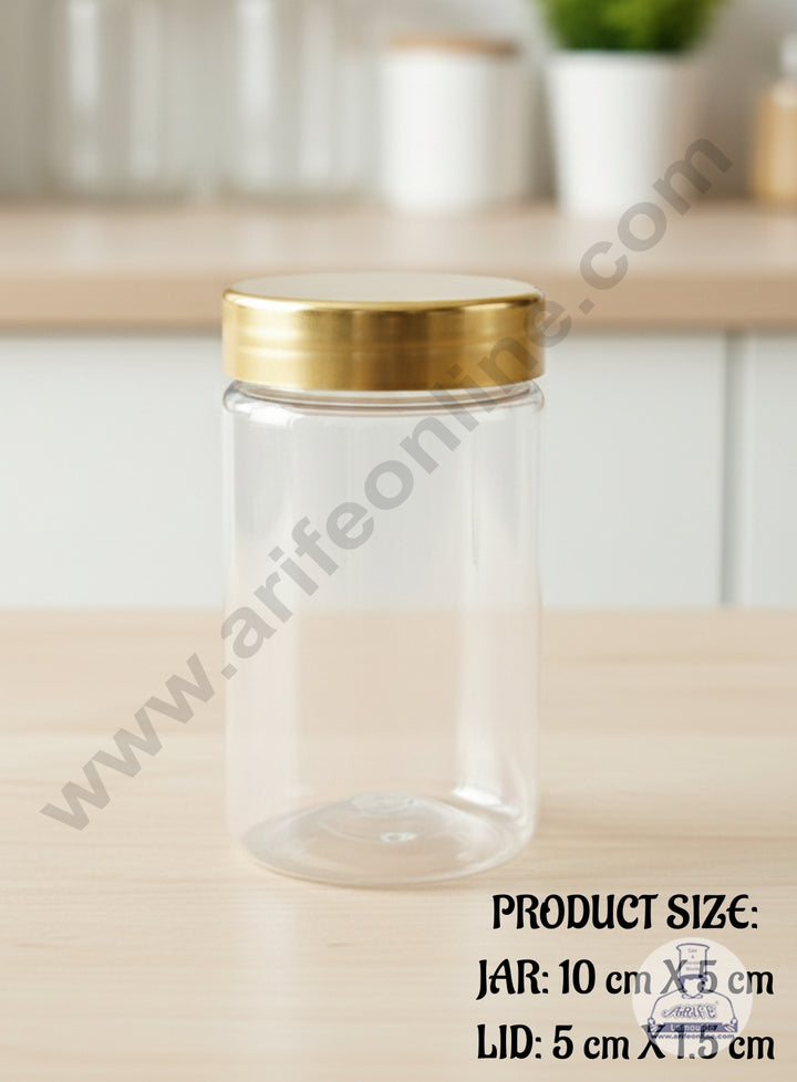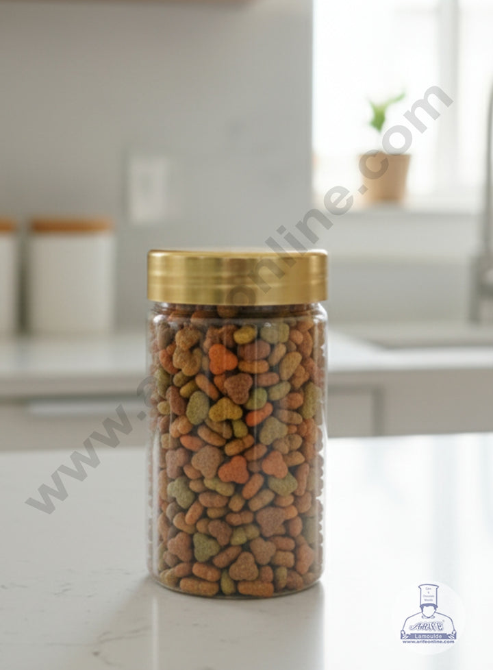 CAKE DECORâ„¢ Clear Plastic Pet Jar with Golden Lid - 1 Piece - 220 ml