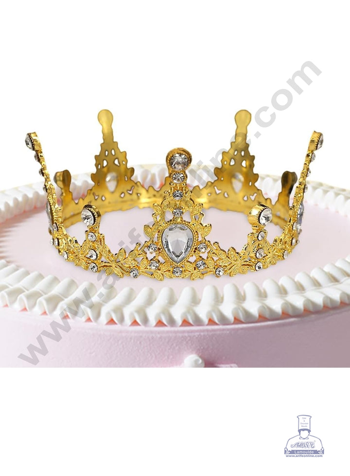 This is a small, ornate, full-round crown (or tiara) designed in a Baroque or Vintage Royal style. It is primarily intended for decorative use, such as a cake topper for birthdays, weddings, or celebratory events.