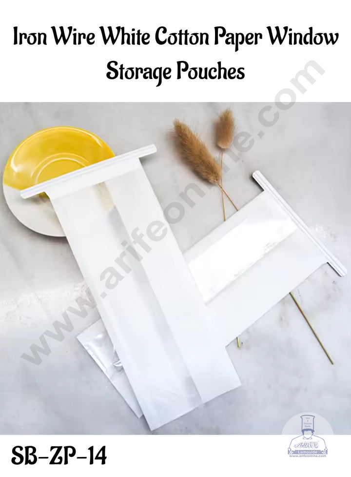 CAKE DECORâ„¢ Iron Wire White Paper Window Storage Pouches - (28 x 13 x 10 cm) (Pack of 10) (SB-ZP-14)
