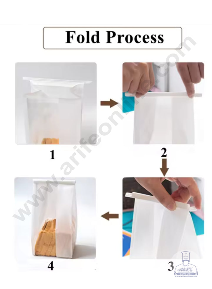 Storage Pouch designed for various uses, particularly for food items like toast, cookies, and other baked goods. The pouches are made with a combination of cotton paper, a transparent window, and an iron wire closure.