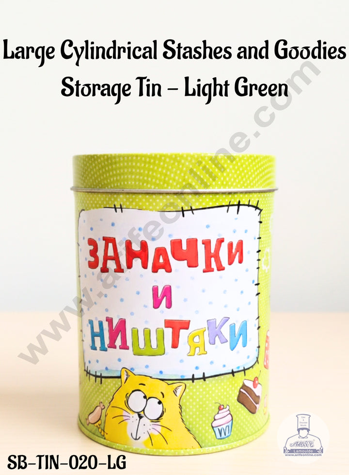 CAKE DECOR™ Large Cylindrical Stashes and Goodies Storage Tin - Light Green │SB-TIN-020-LG│