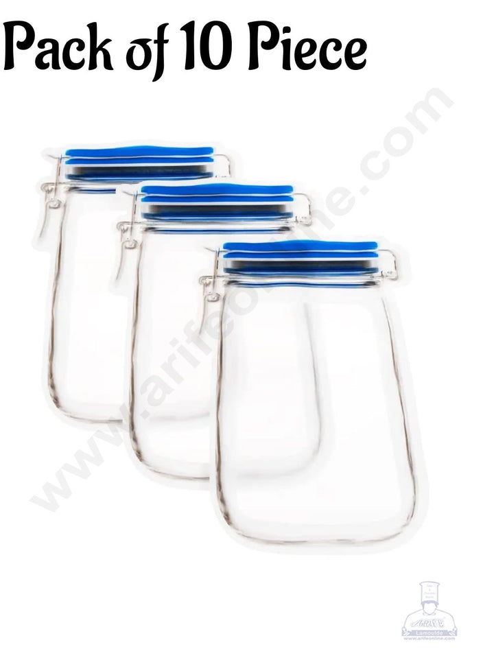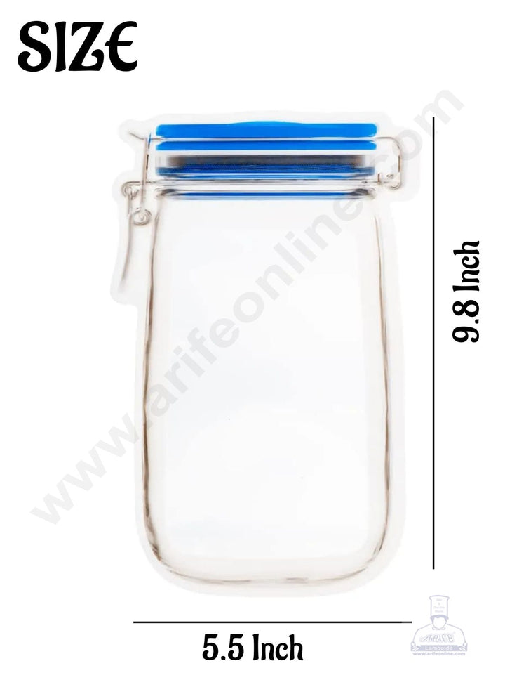 CAKE DECOR™  Large Mason Jar Shaped  Stand Up Zipper Pouch - Blue  (9.8 x 5.5 Inch) (Pack of 10) (SB-ZP-13)