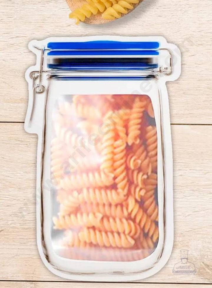 This product is a mason jar-shaped pouch designed for food and product storage. Its unique design and practical features make it a popular alternative to traditional jars.