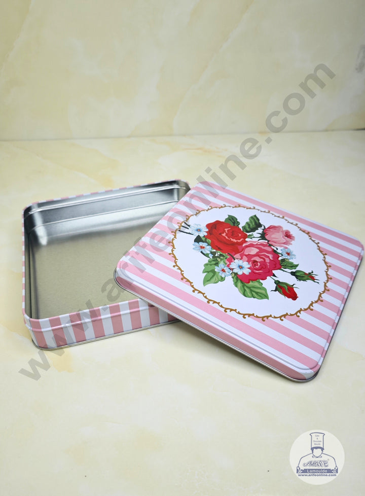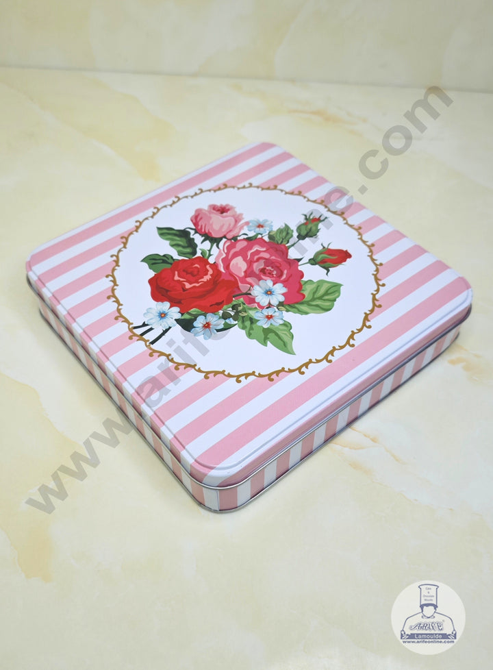CAKE DECORâ„¢ Large Pastel Pink Striped Floral Square Storage Tin - SB-TIN-017-Pink