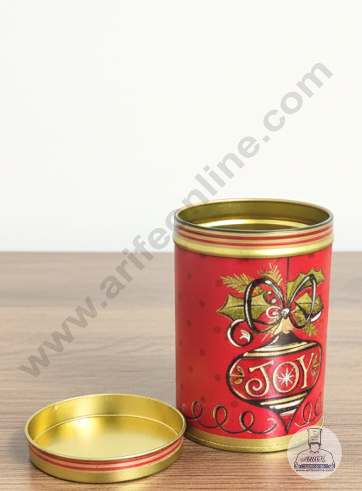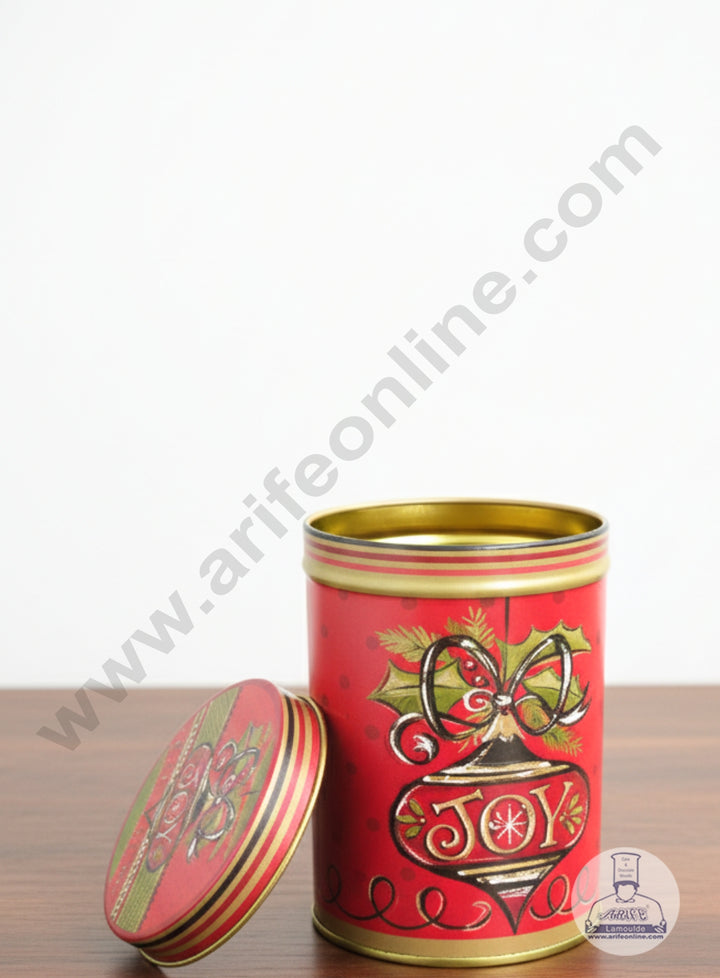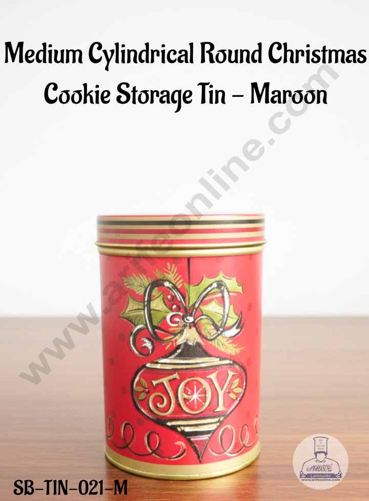 CAKE DECOR™ Medium Cylindrical Round Christmas Cookie Storage Tin - Maroon│SB-TIN-021-M│