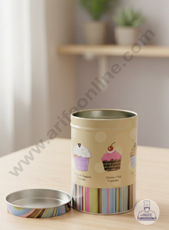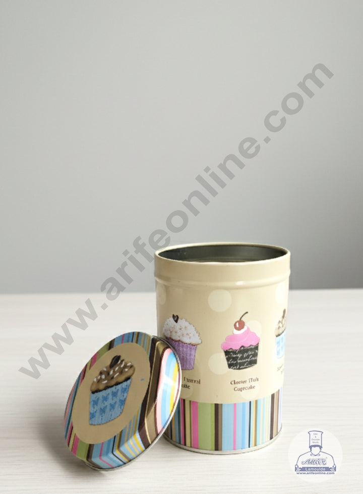 CAKE DECOR™ Medium Cylindrical  Striped Cupcake  Storage Tin - Beige │SB-TIN-021-Beige│