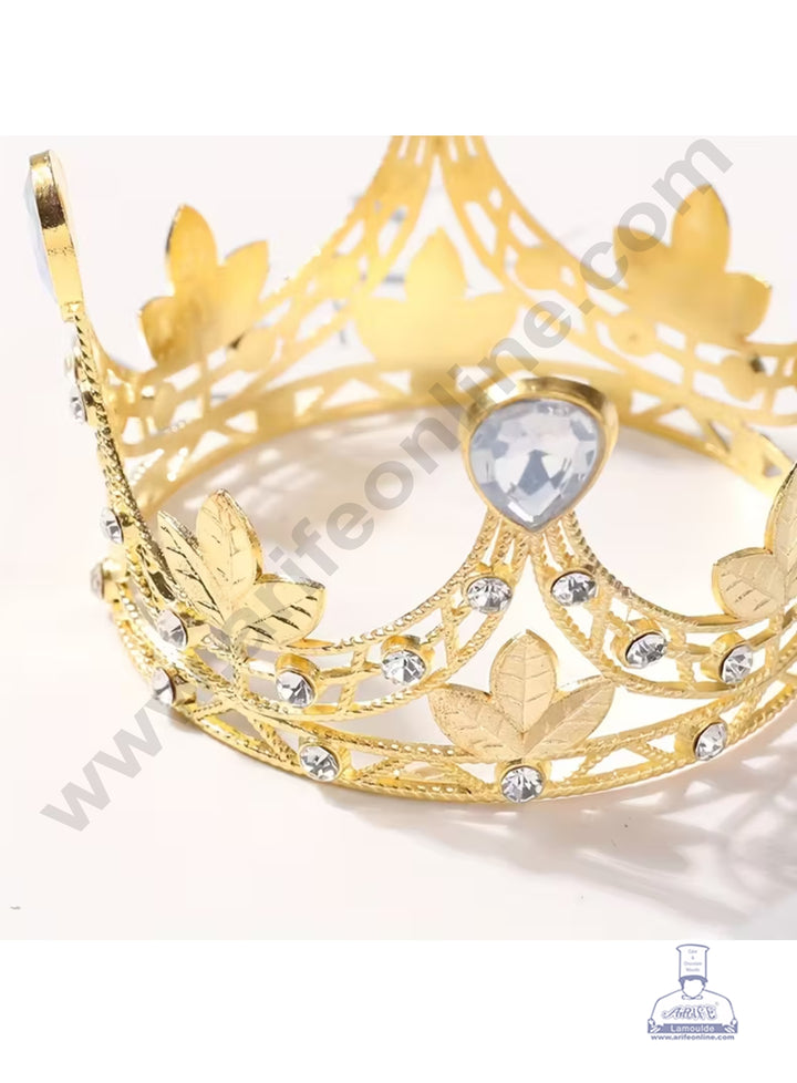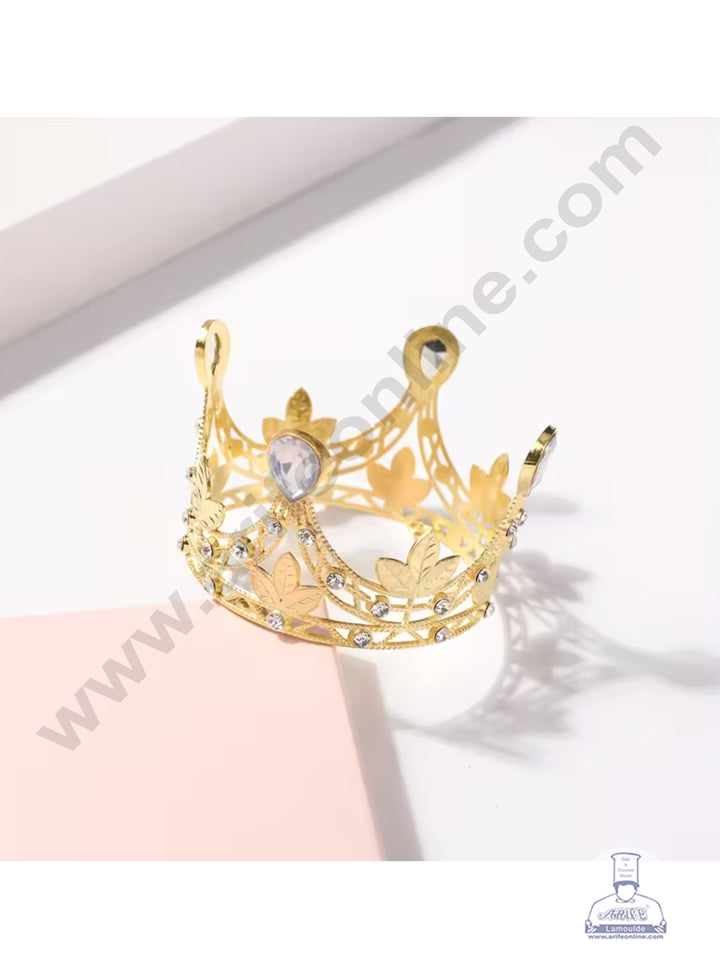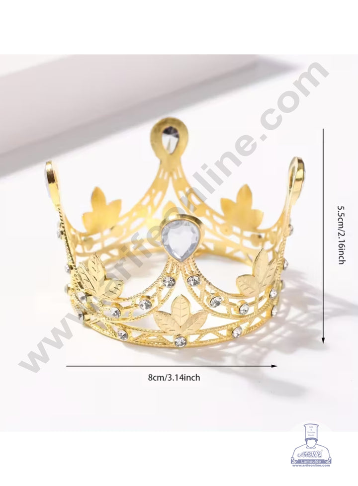 CAKE DECORâ„¢ Mini Gold Leaf and Gem Cake Topper Crown - SBCR-72-9-G