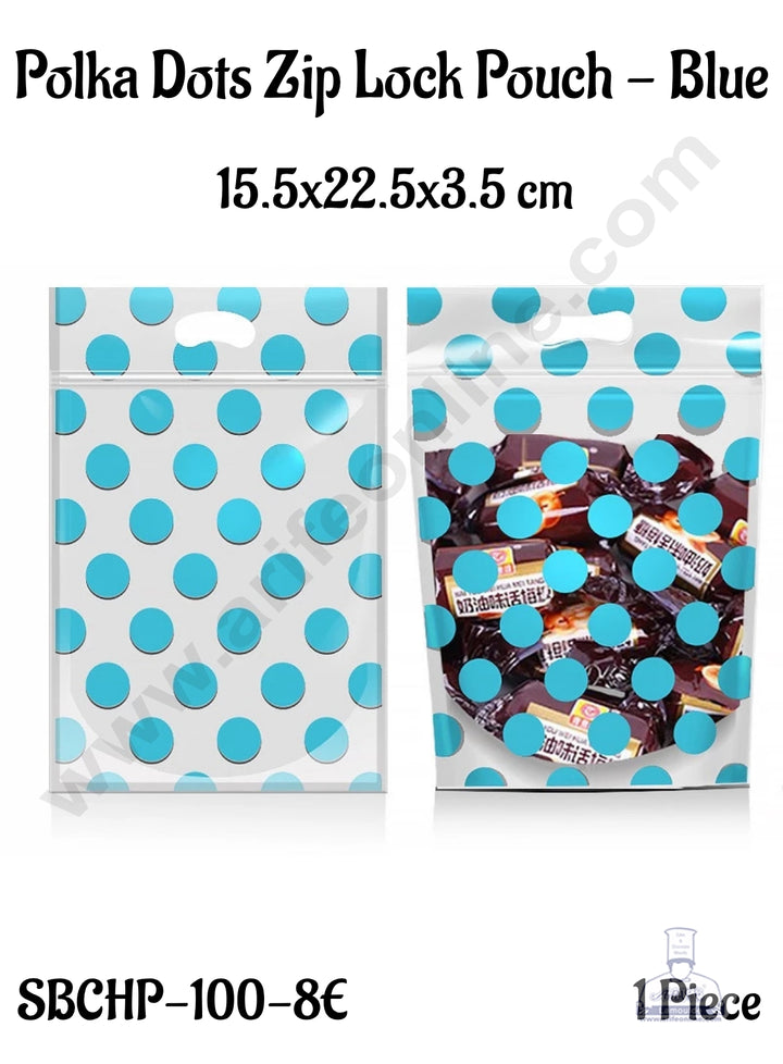 CAKE DECOR™ Polka Dots Zip Lock Pouch - Blue| 15.5x22.5x3.5 cm (SBCHP-100-8E)| 1 Piece