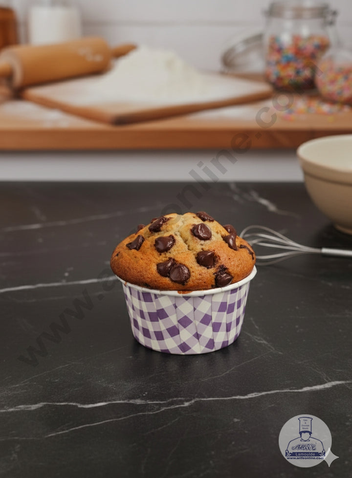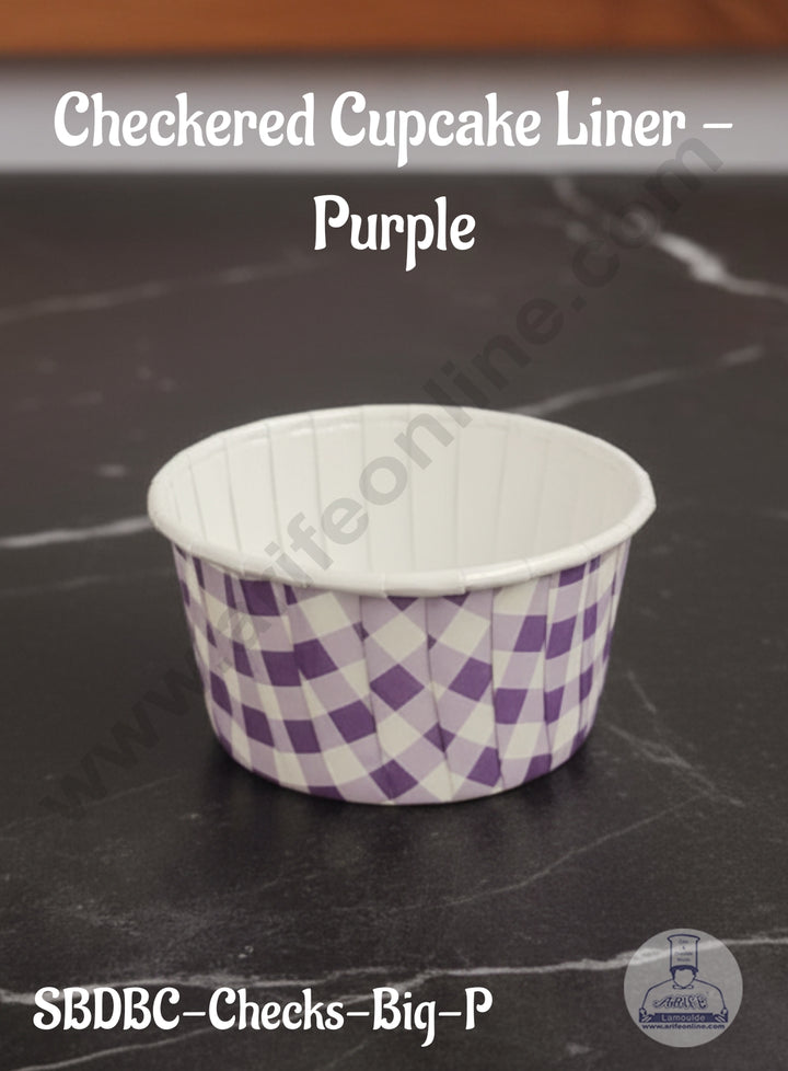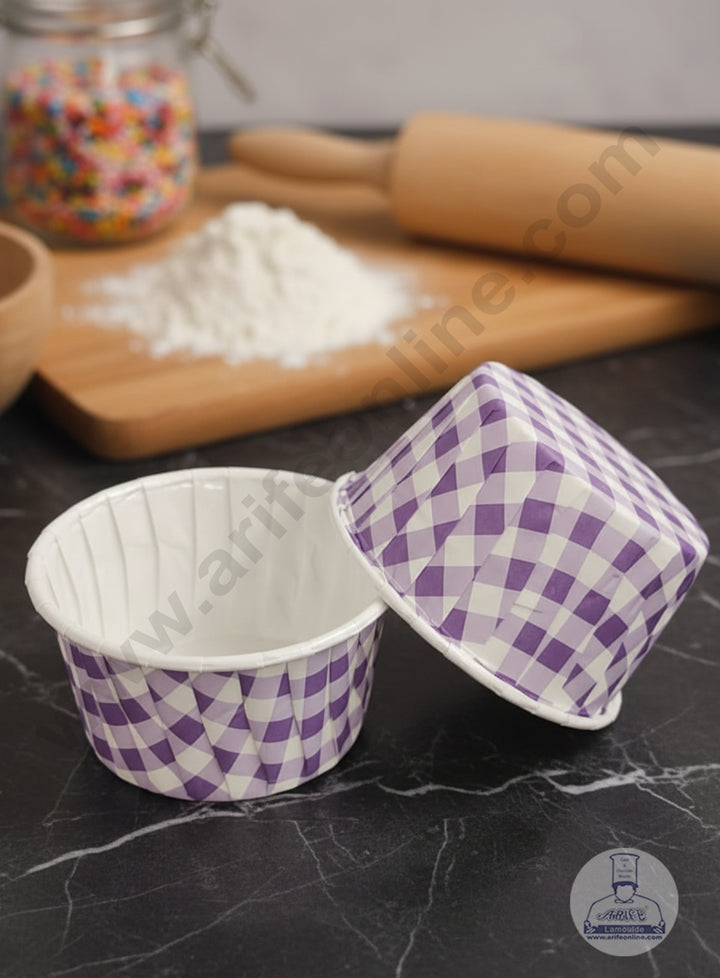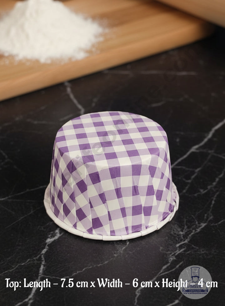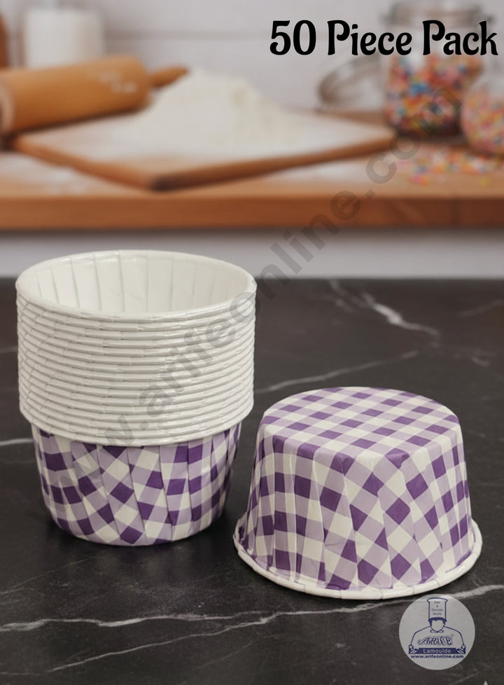 CAKE DECOR™ Purple Checkered Direct Bake-able Paper Muffin Cups - Big (50 Pcs Pack)