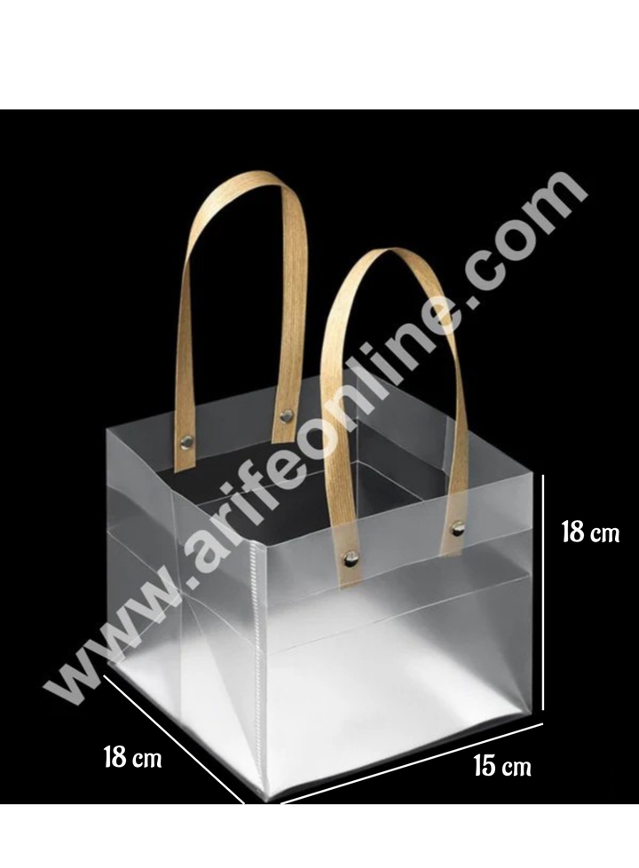 CAKE DECOR™ Frosted PVC Square Cake Carry Bag with Plastic Flat Handle  - 18 X 18 X 15 cm | Gift Box | Gift Bag with Handle (1 Pcs Pack)
