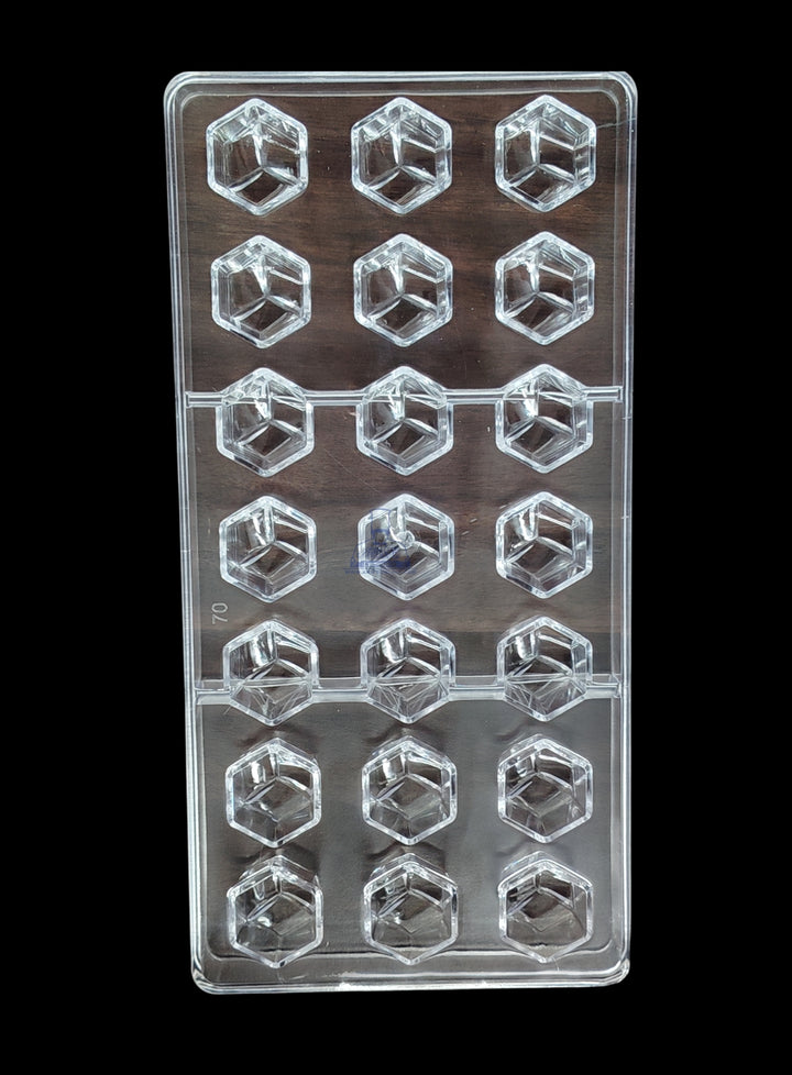 CAKE DECORâ„¢ Regular Bakers 21-Cavity Polycarbonate Faceted Hexagon Chocolate Mold |SBPS-70|1 Piece|