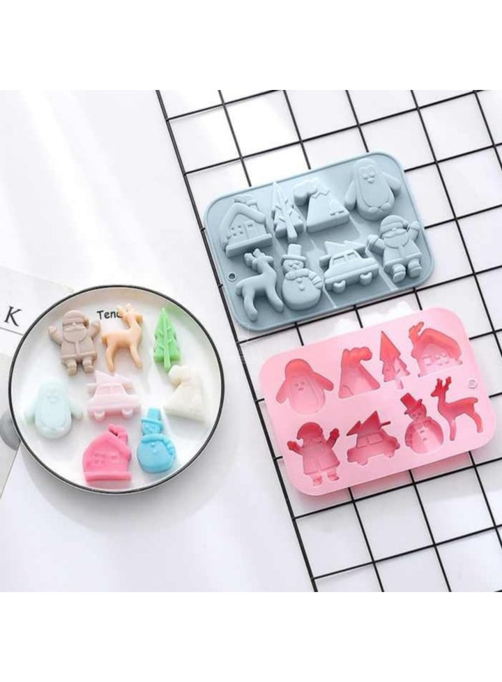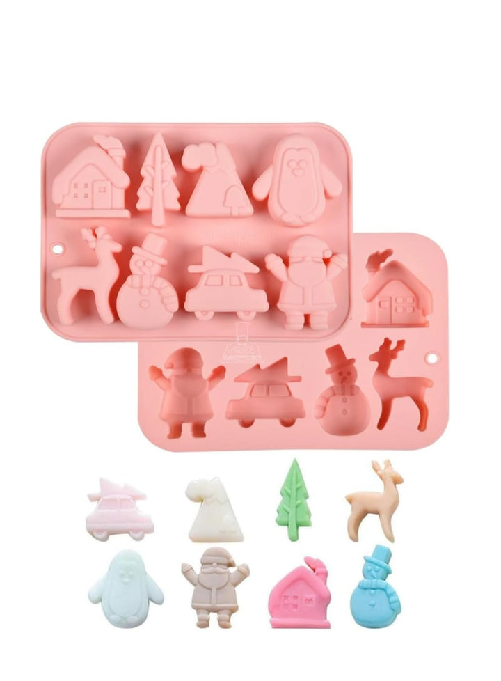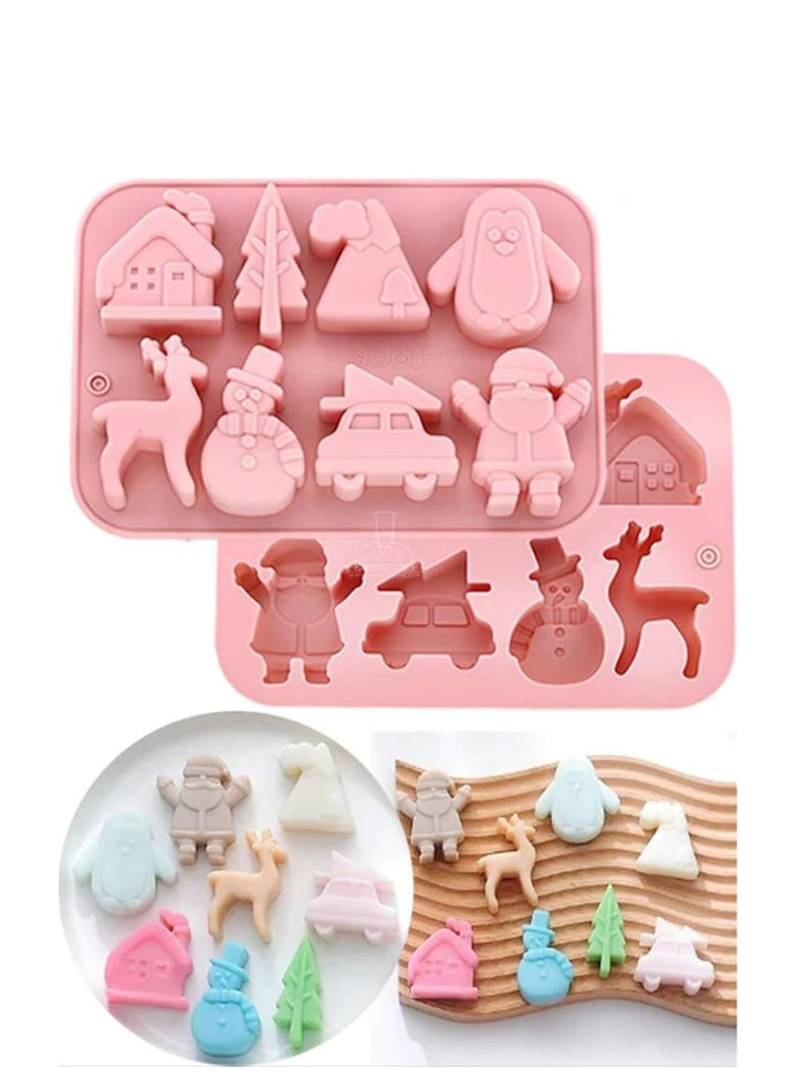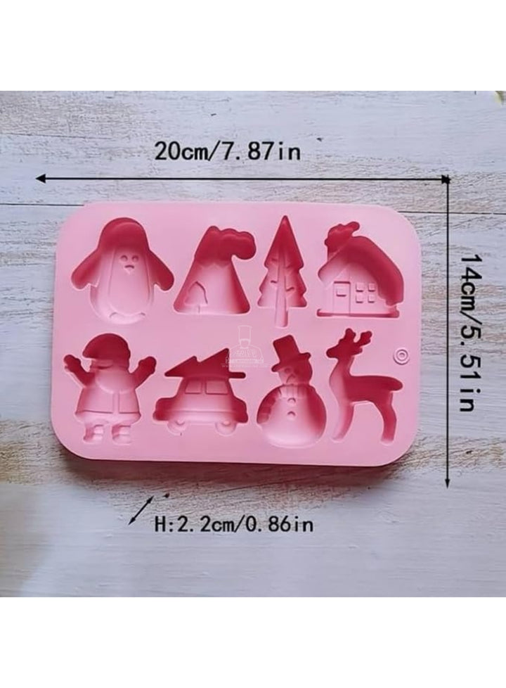 CAKE DECORâ„¢ Silicon 8 Cavity Christmas Theme Tree, Snowman, House, Deer Silicon Chocolate Mould Jelly Mould SBCM-LBM1150 / JSC3879
