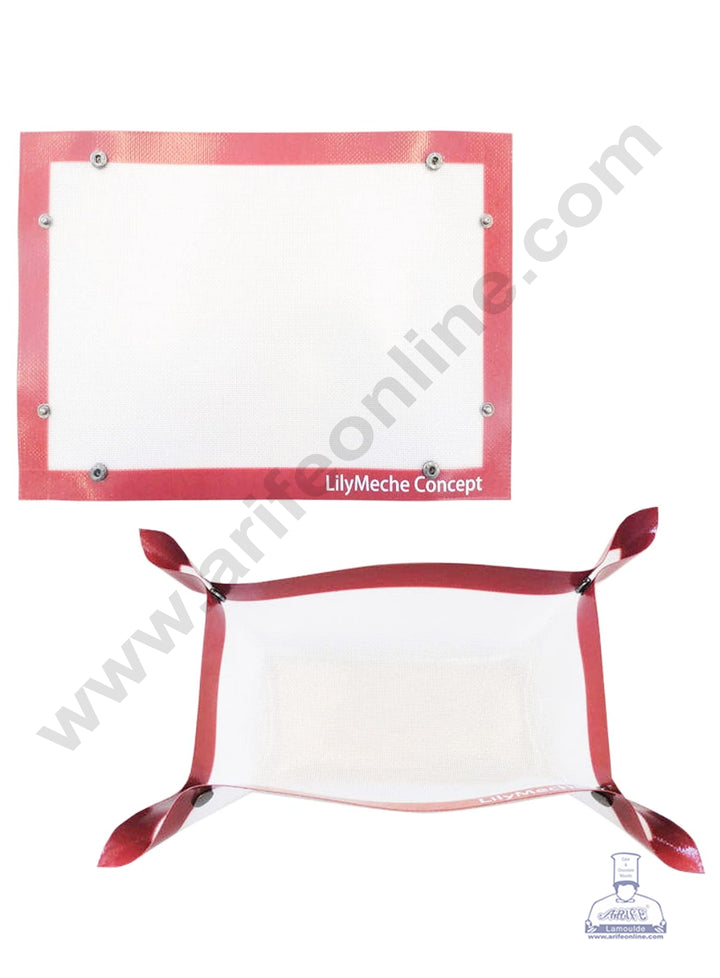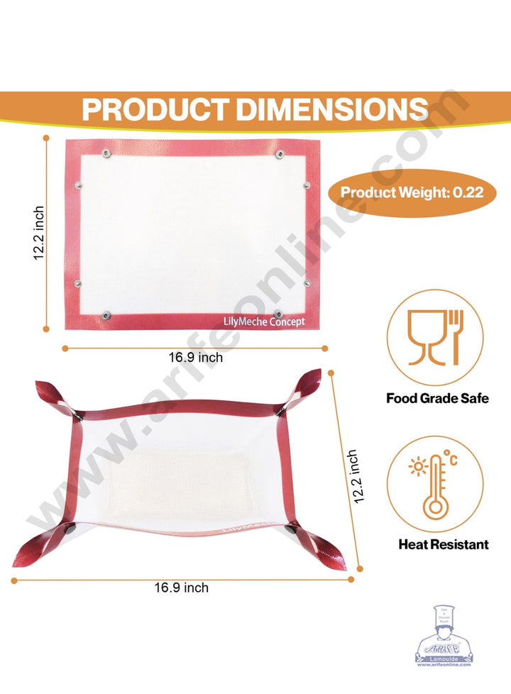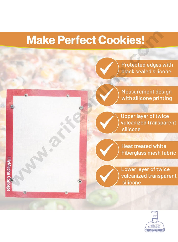 it is a small, high-performance silicon baking mat with a reinforced core and a distinctive red border, notable for its unique inclusion of eight metal buttons around the perimeter. It is an ideal tool for home bakers and professional kitchens seeking an easy-to-clean, non-stick, and reusable alternative to traditional baking surfaces.