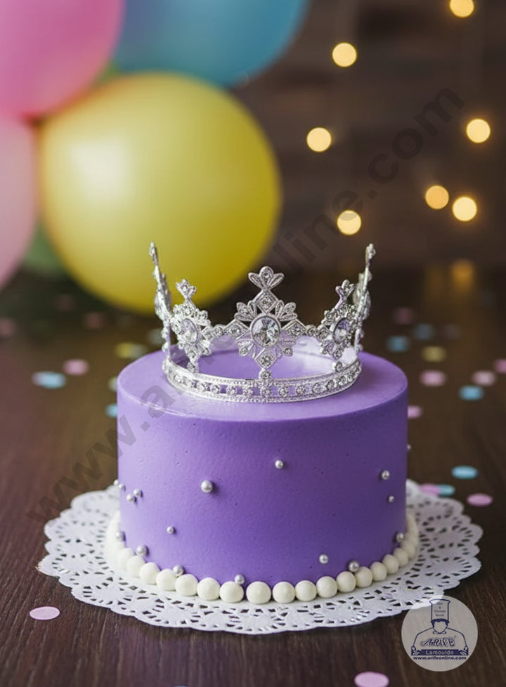 CAKE DECORâ„¢ Silver Mini Gem and Leaf Detailed Filigree Cake Topper Crown - SBCR-72-14-S