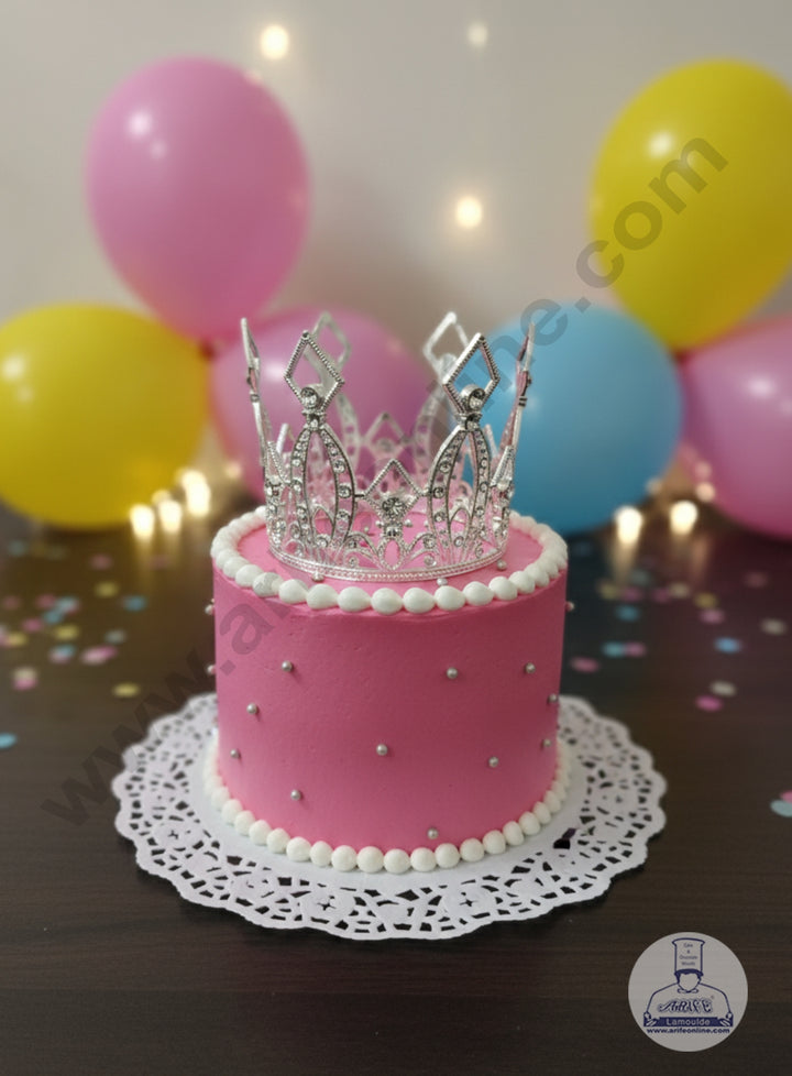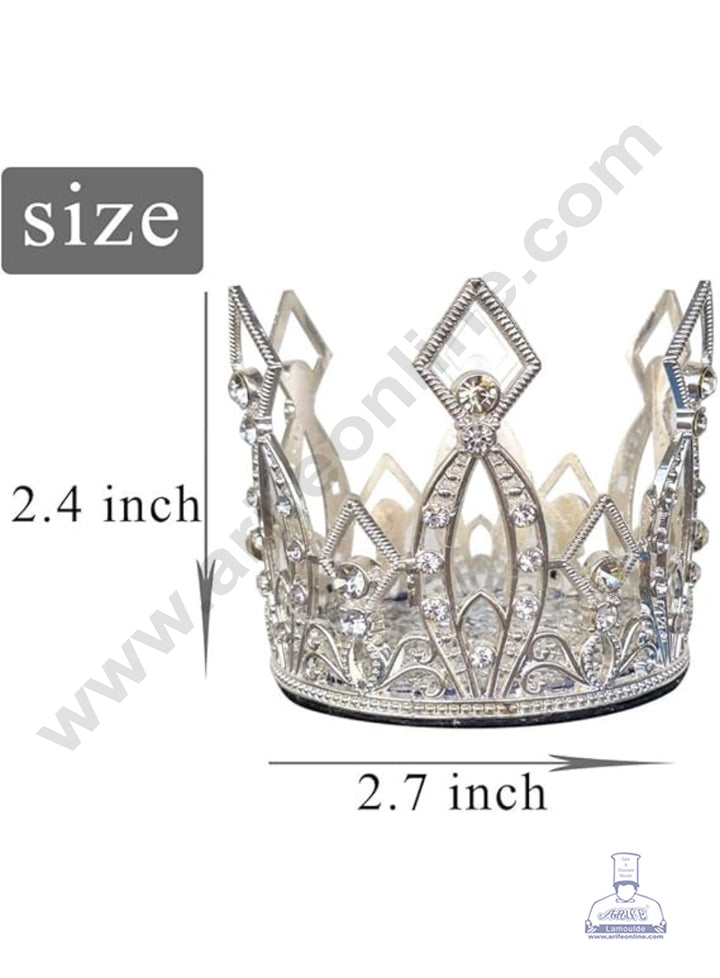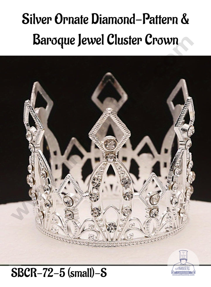 CAKE DECORâ„¢ Silver Ornate Diamond-Pattern & Baroque Jewel Cluster Crown - SBCR-72-5 (small)-S