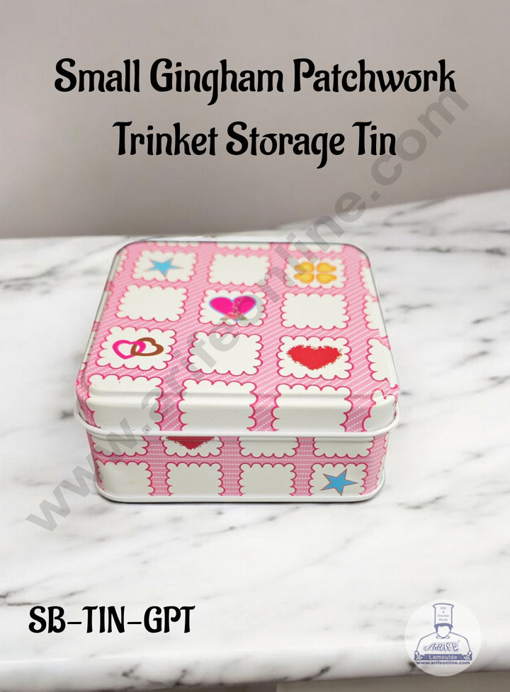 CAKE DECOR™ Small Gingham Patchwork Trinket Storage Tin│Length: 8 cm x Breadth: 8 cm x Height: 4 cm)│