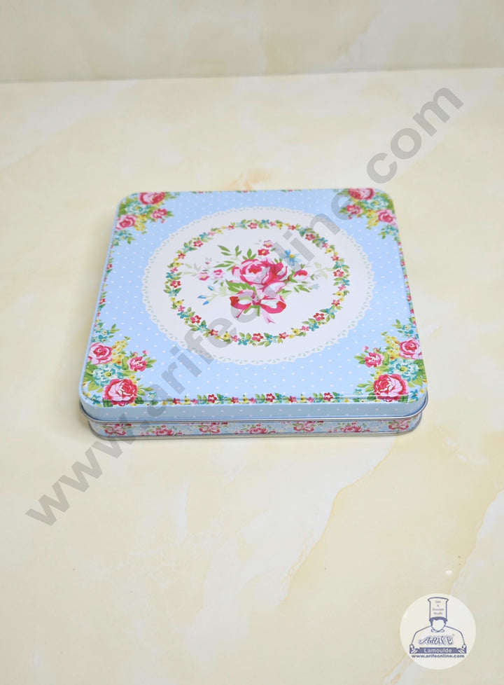 • Pattern: Polka Dot Pattern: The tin includes a polka dot pattern. The dots are typically white or a complementary color to the light blue background. Floral Motif: It is decorated with an enchanting floral print. These floral patterns often incorporate images of garden blooms like roses or peonies in a classic, vintage, or ditsy style.