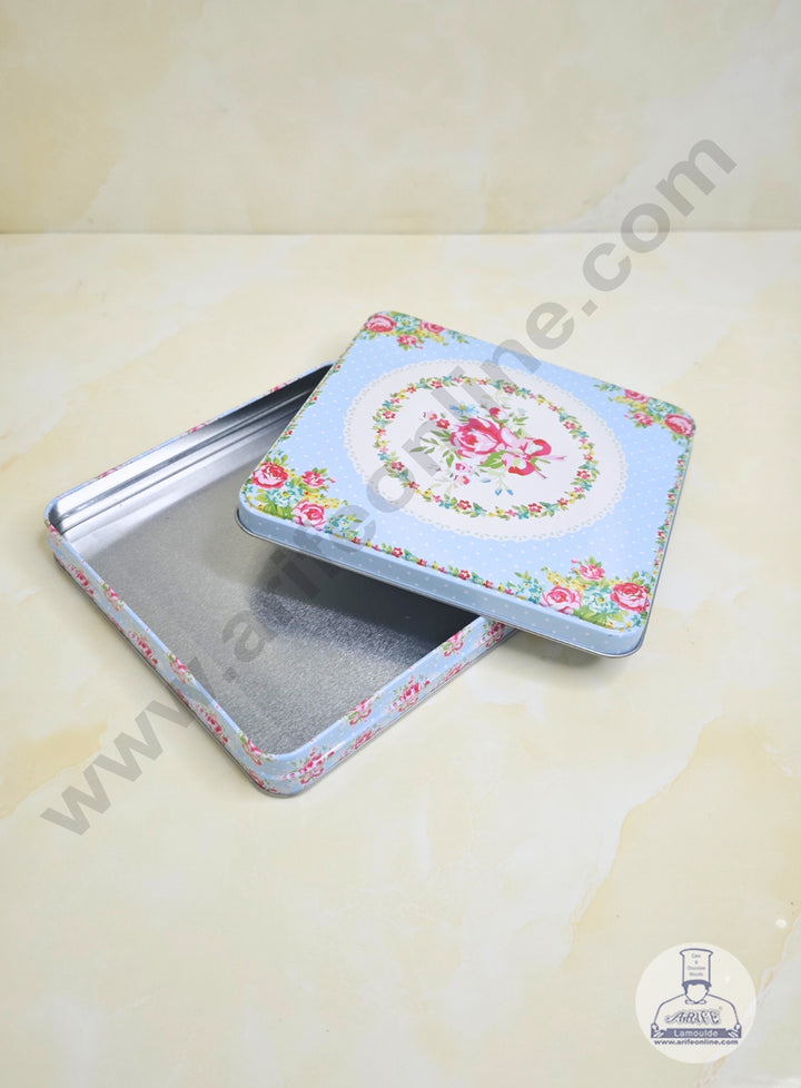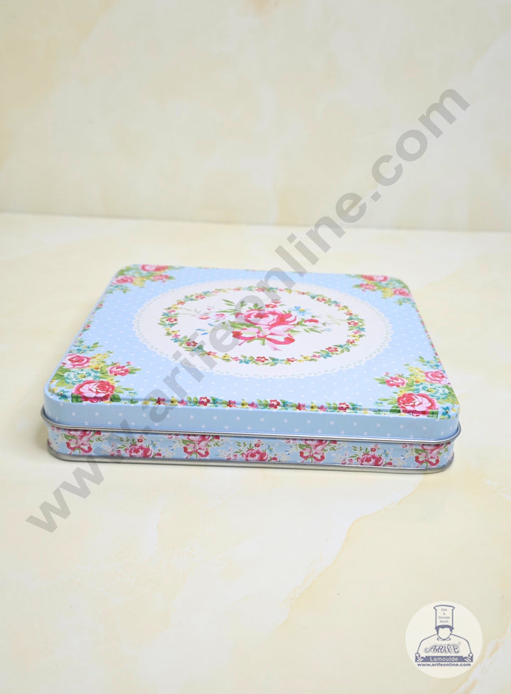 CAKE DECORâ„¢ Small Light Blue Polka Dot Floral Storage Square Tin - SB-TIN-019-LB
