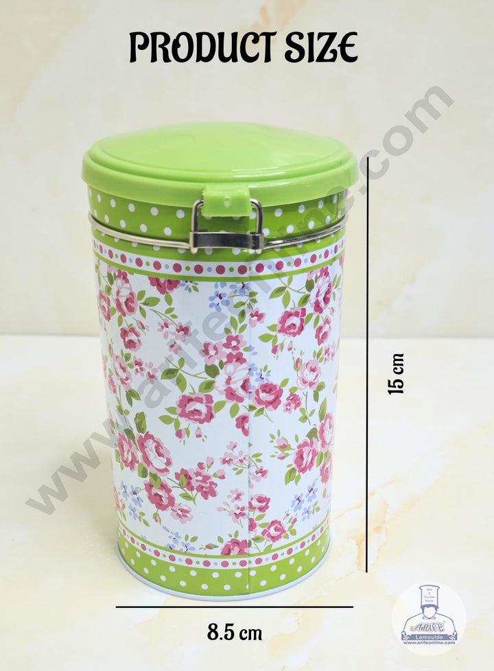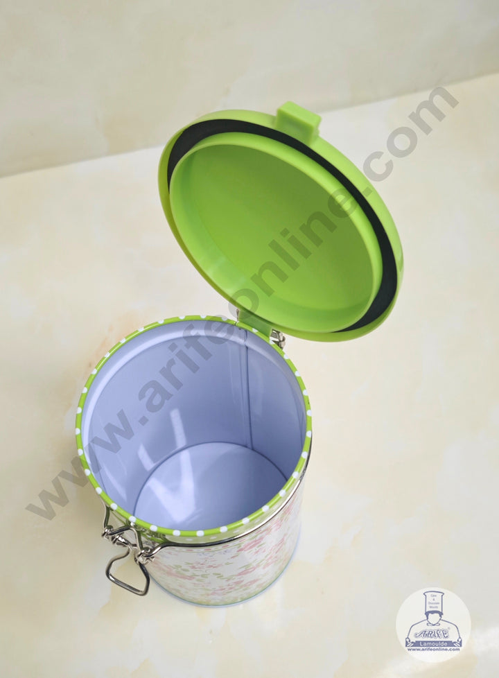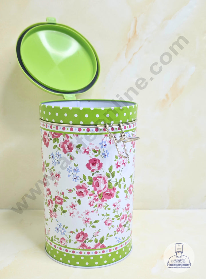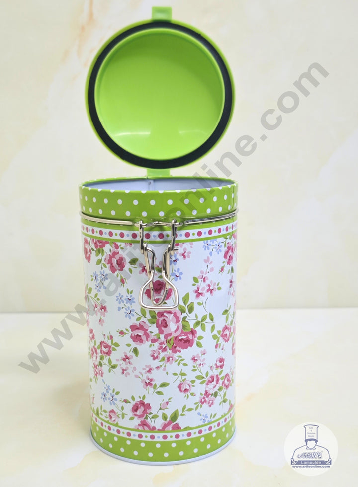 CAKE DECOR™ Small Light Green Floral Print  Cylindrical Tin with Clip Closure - SB-TIN-016-LGreen