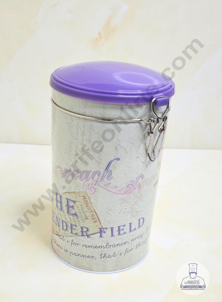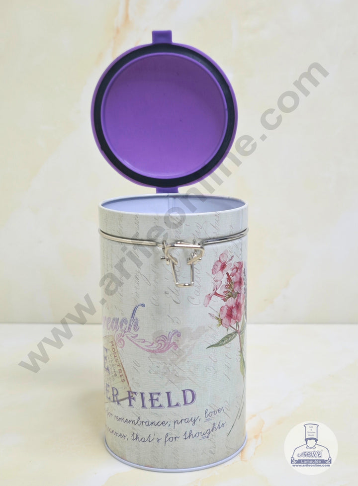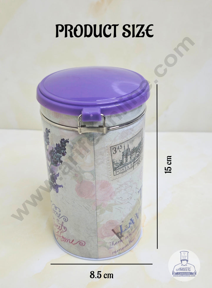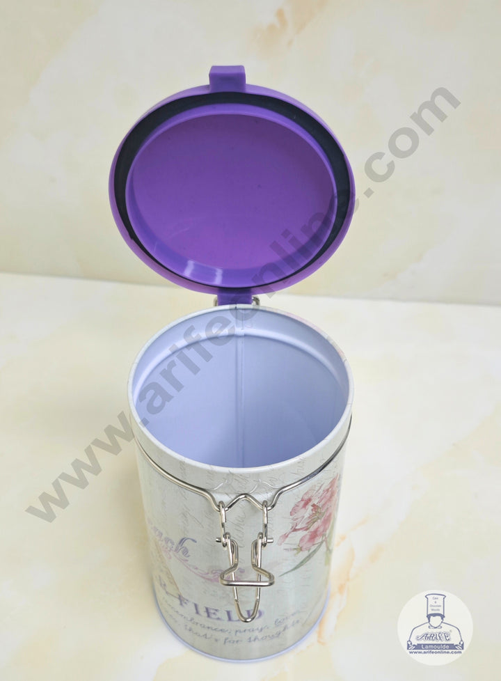 CAKE DECORâ„¢ Small Purple-Lid Botanical Print Cylindrical Tin with Clip Closure - SB-TIN-016-Purple